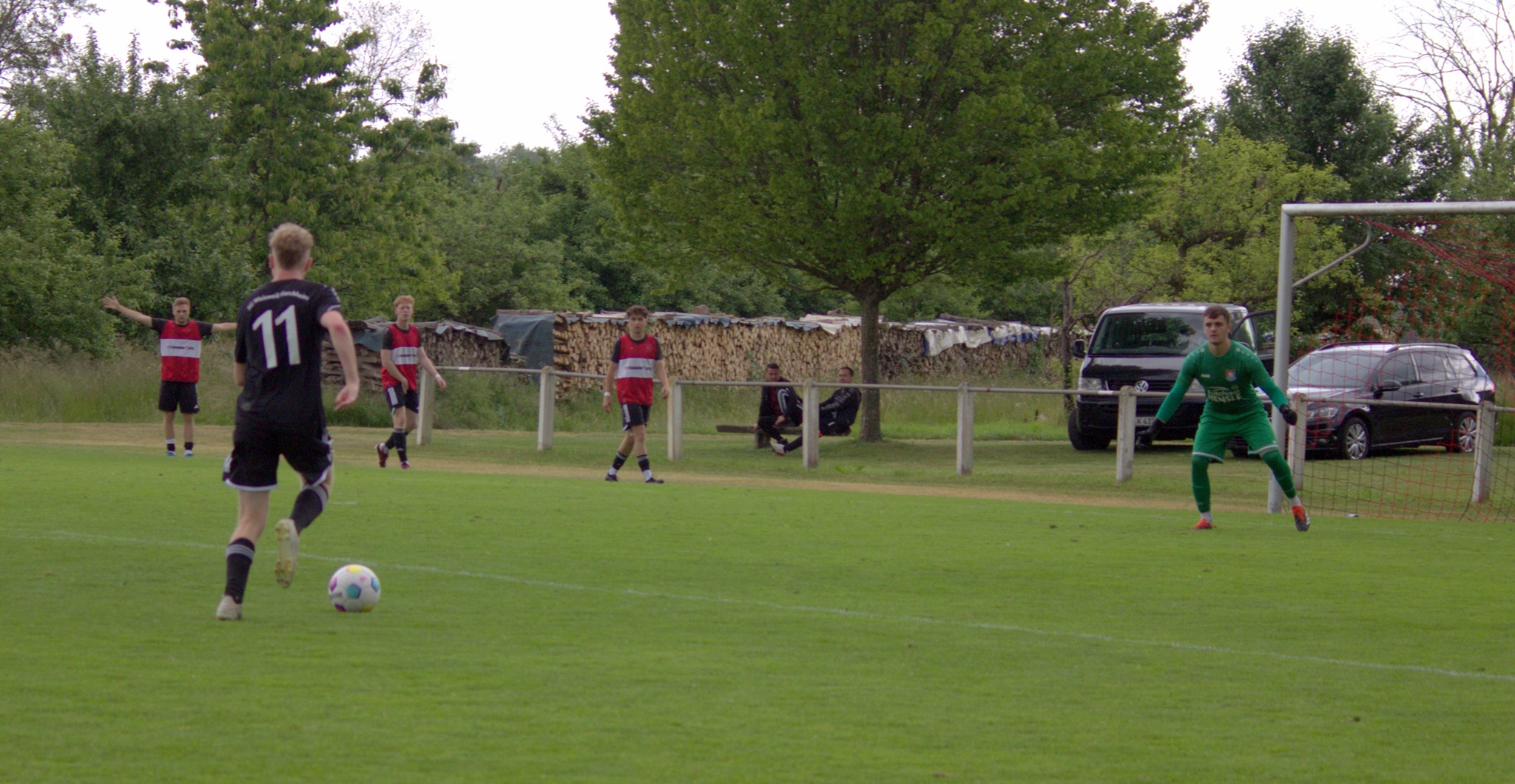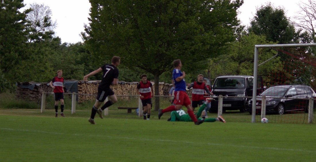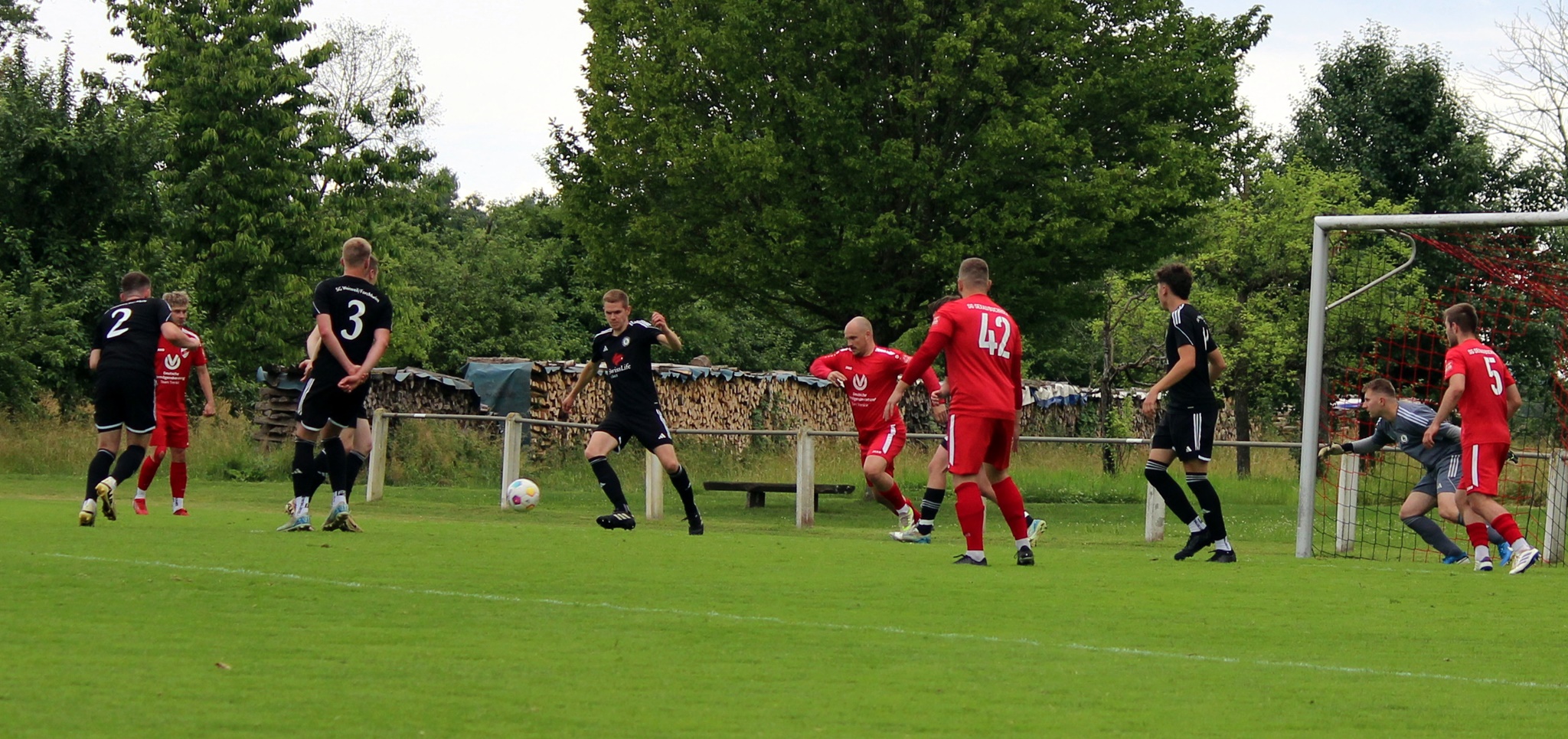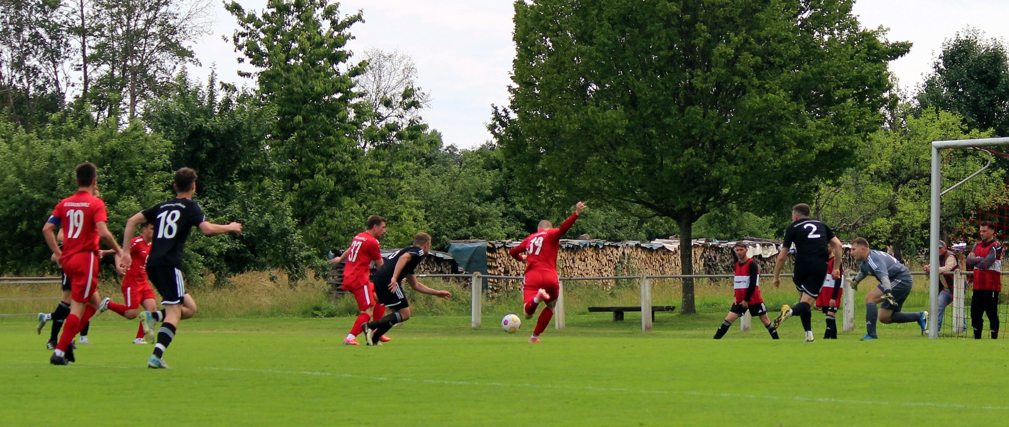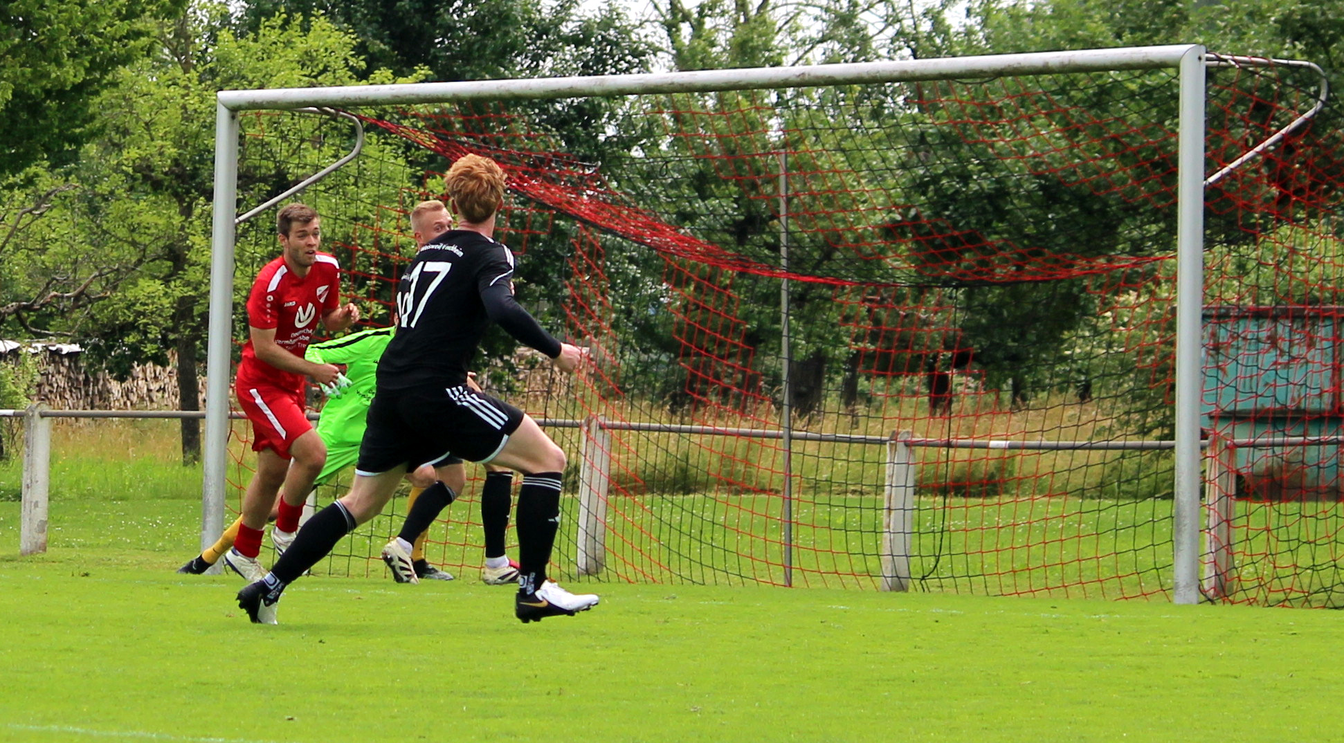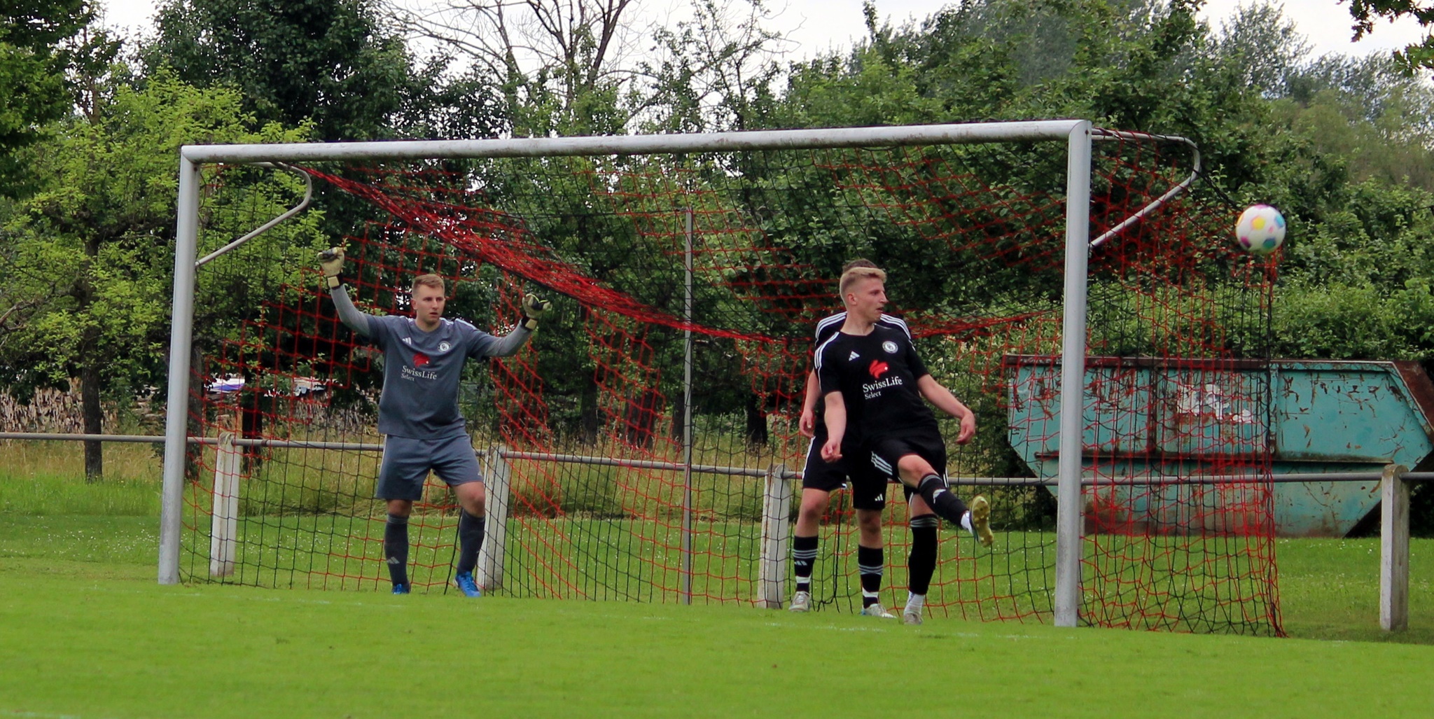 Mit einem Freistoßtreffer zum 2:1 in der 93. Spielminute entschied Lukas Pickhardt die packende Spitzenbegegnung zugunsten der Einheimischen. Zuvor hatten die Zuschauer ein gutes Kreisligaspiel gesehen, in dem beide Teams versuchten mit spielerischen Mitteln zum Torerfolg zu kommen. Aaron Striegel mit einem Sahnetag im Tor des Gastgebers verhinderte mehrfach einen Rückstand und so verdiente sich der Gast in der 2. Hälfte die Führung (72.)