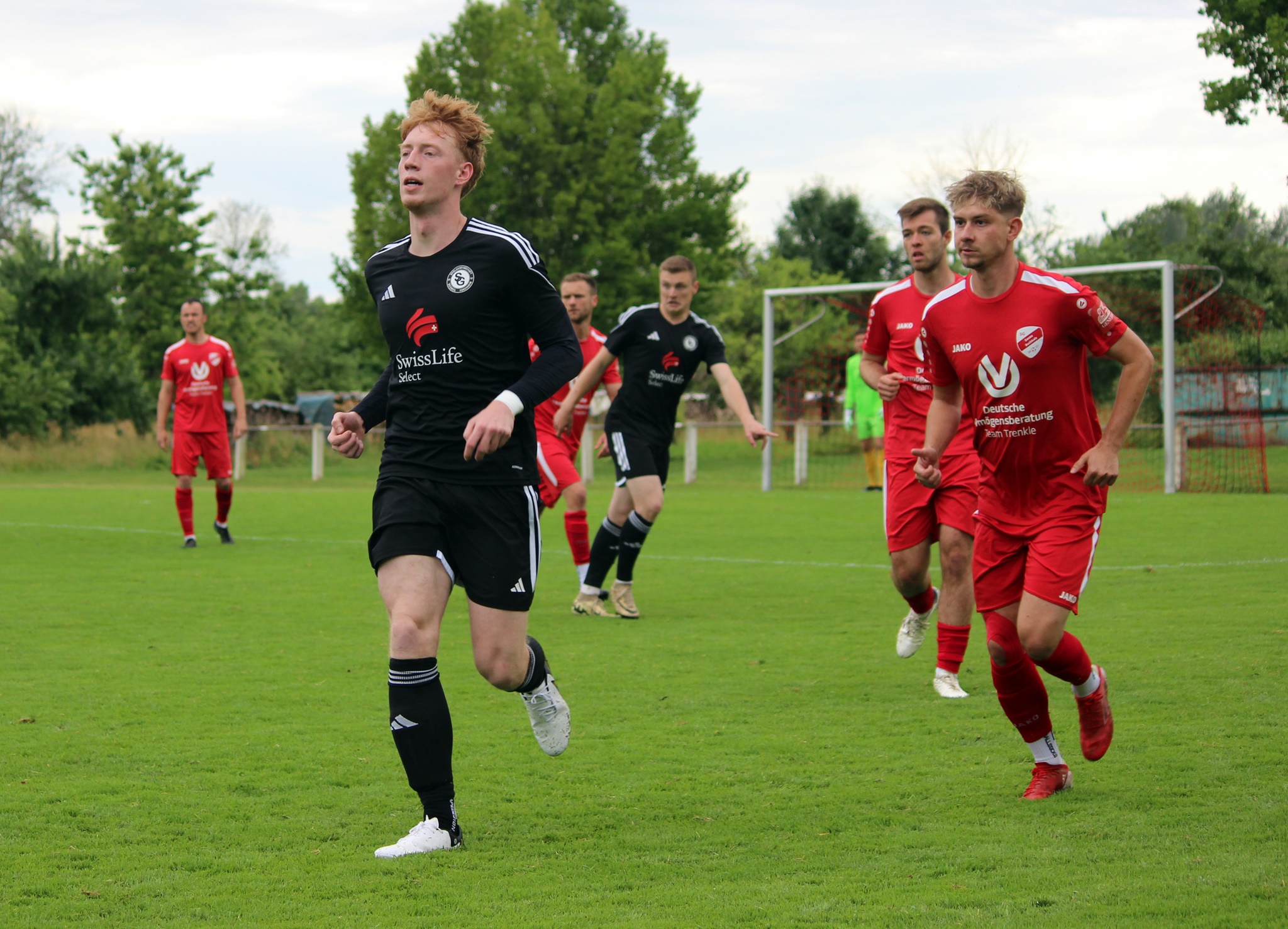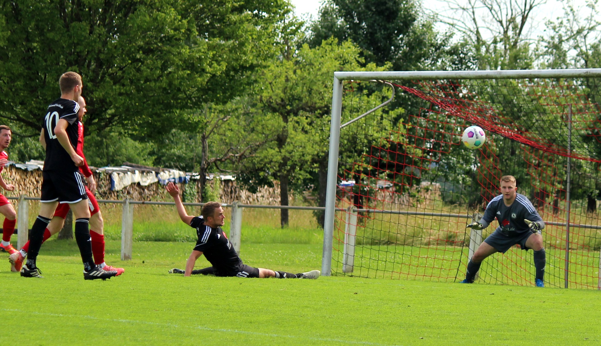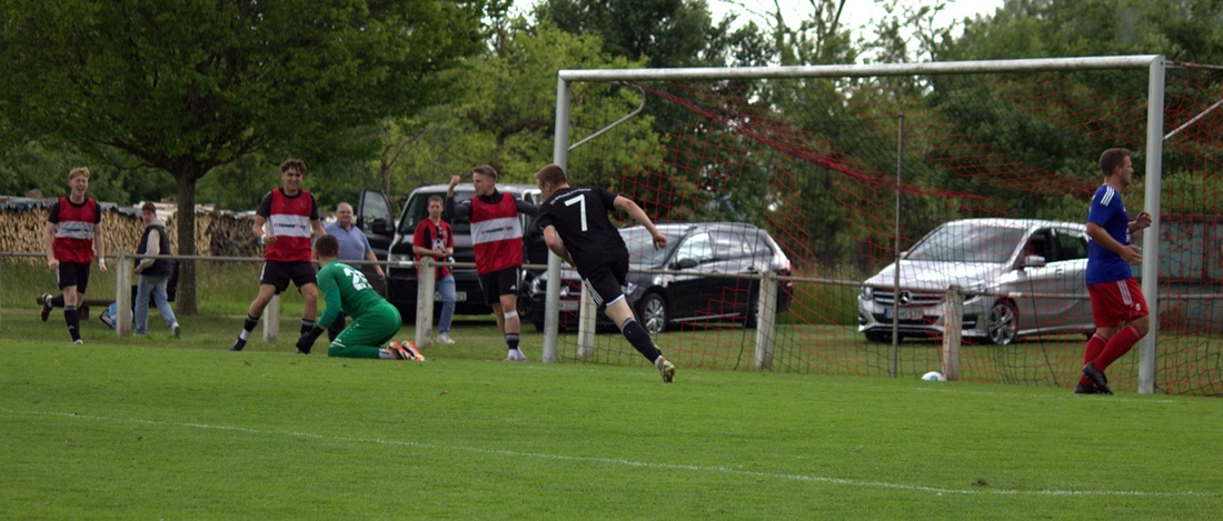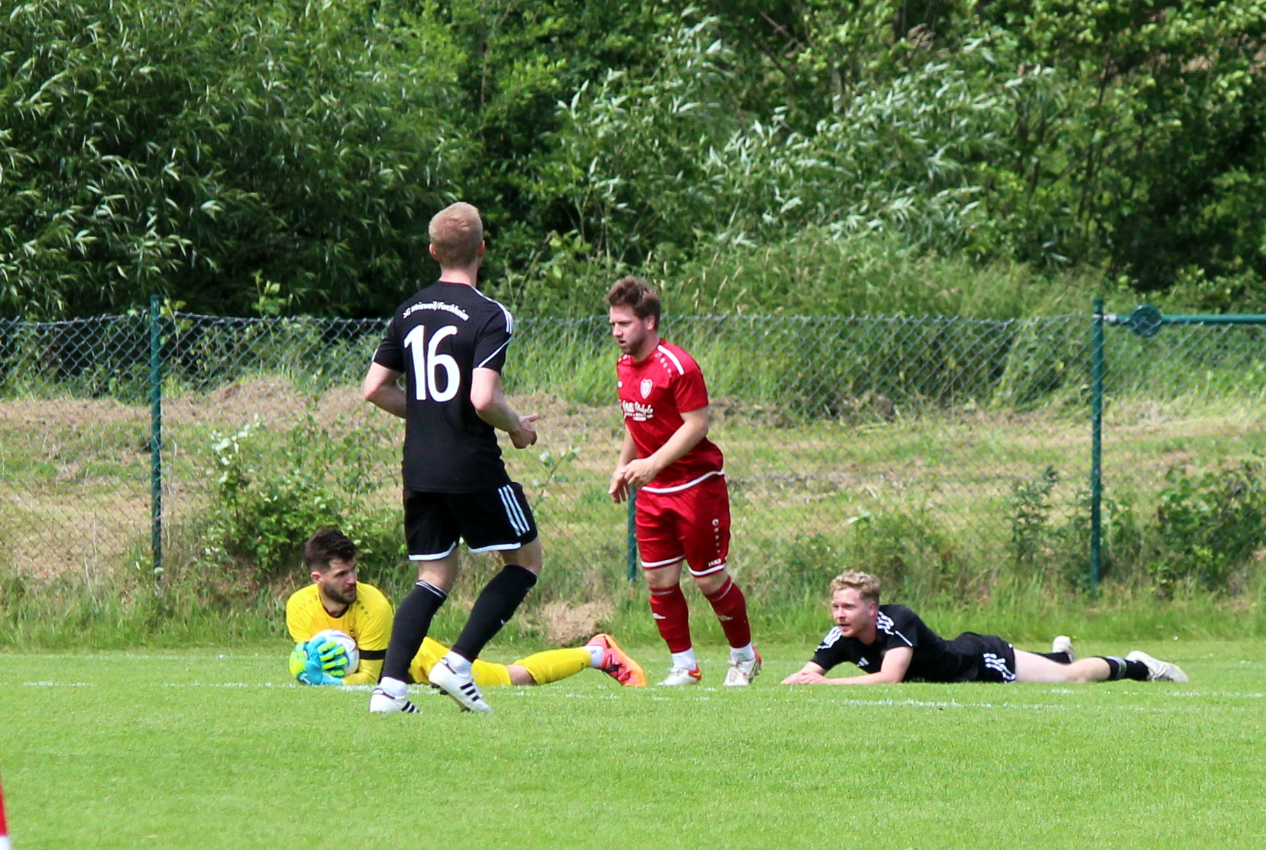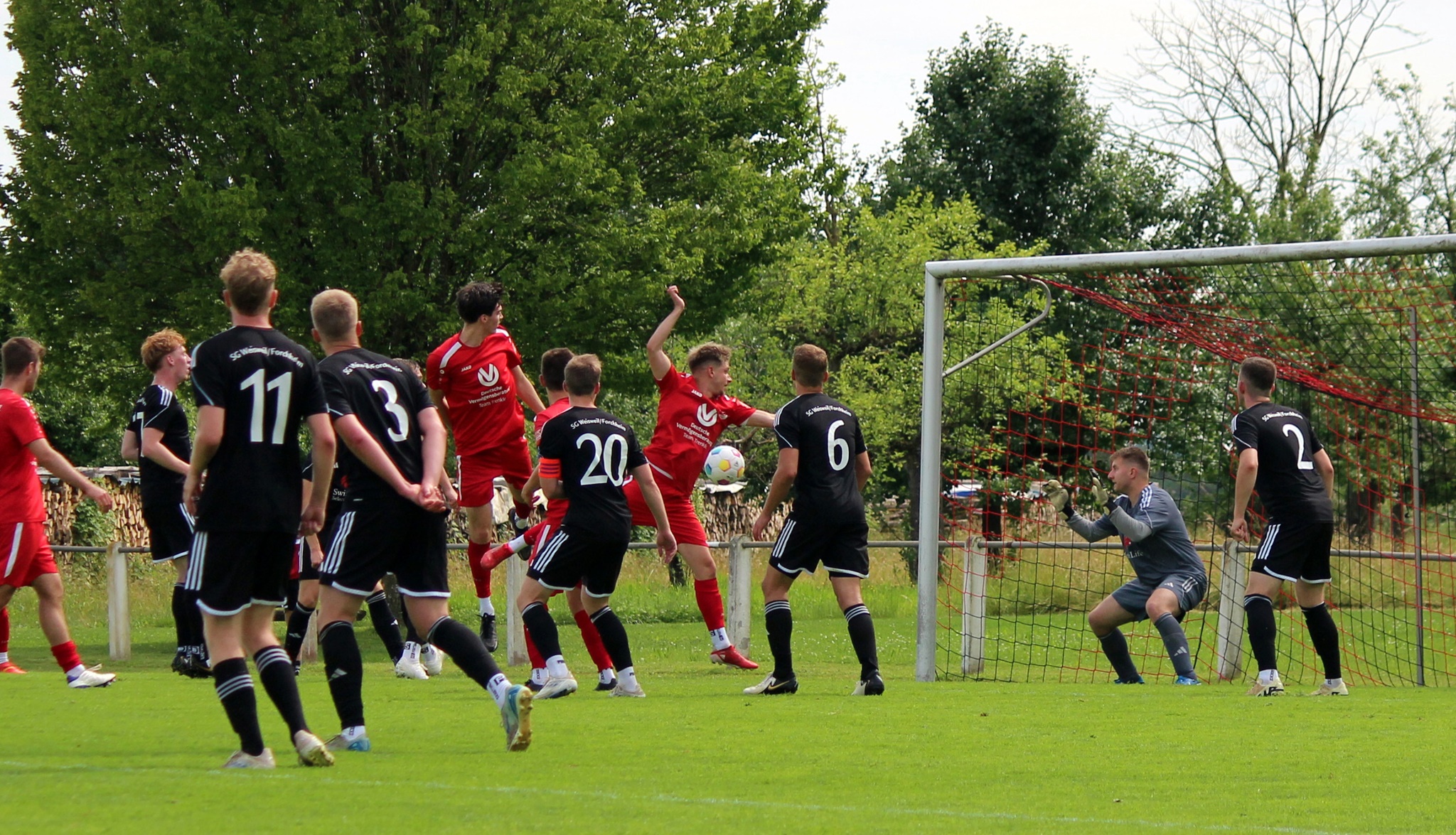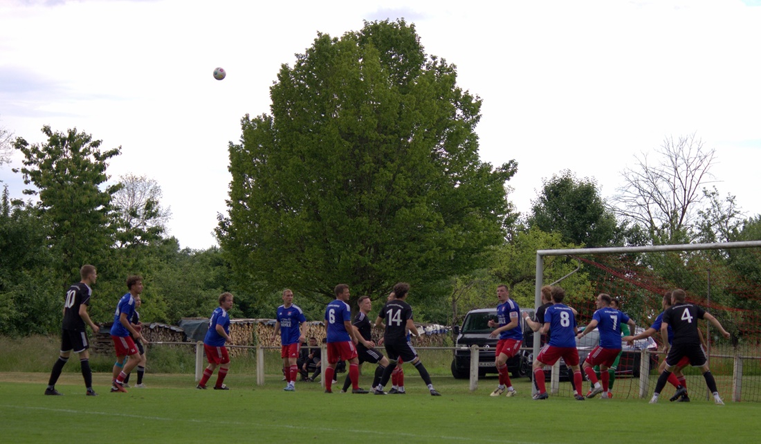 Mit einem Freistoßtreffer zum 2:1 in der 93. Spielminute entschied Lukas Pickhardt die packende Spitzenbegegnung zugunsten der Einheimischen. Zuvor hatten die Zuschauer ein gutes Kreisligaspiel gesehen, in dem beide Teams versuchten mit spielerischen Mitteln zum Torerfolg zu kommen. Aaron Striegel mit einem Sahnetag im Tor des Gastgebers verhinderte mehrfach einen Rückstand und so verdiente sich der Gast in der 2. Hälfte die Führung (72.)