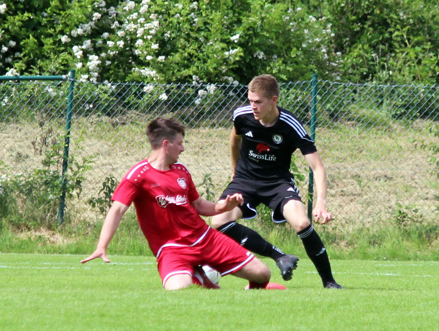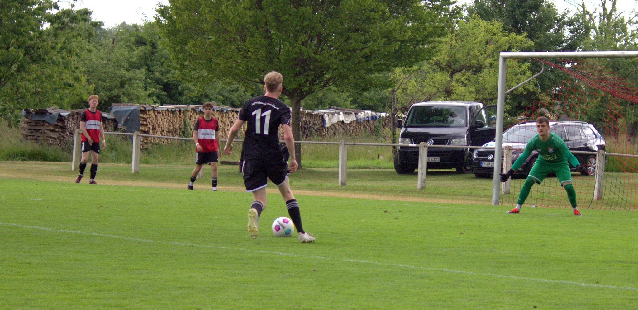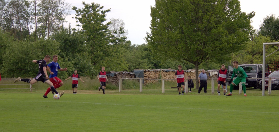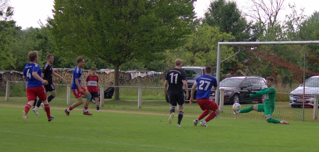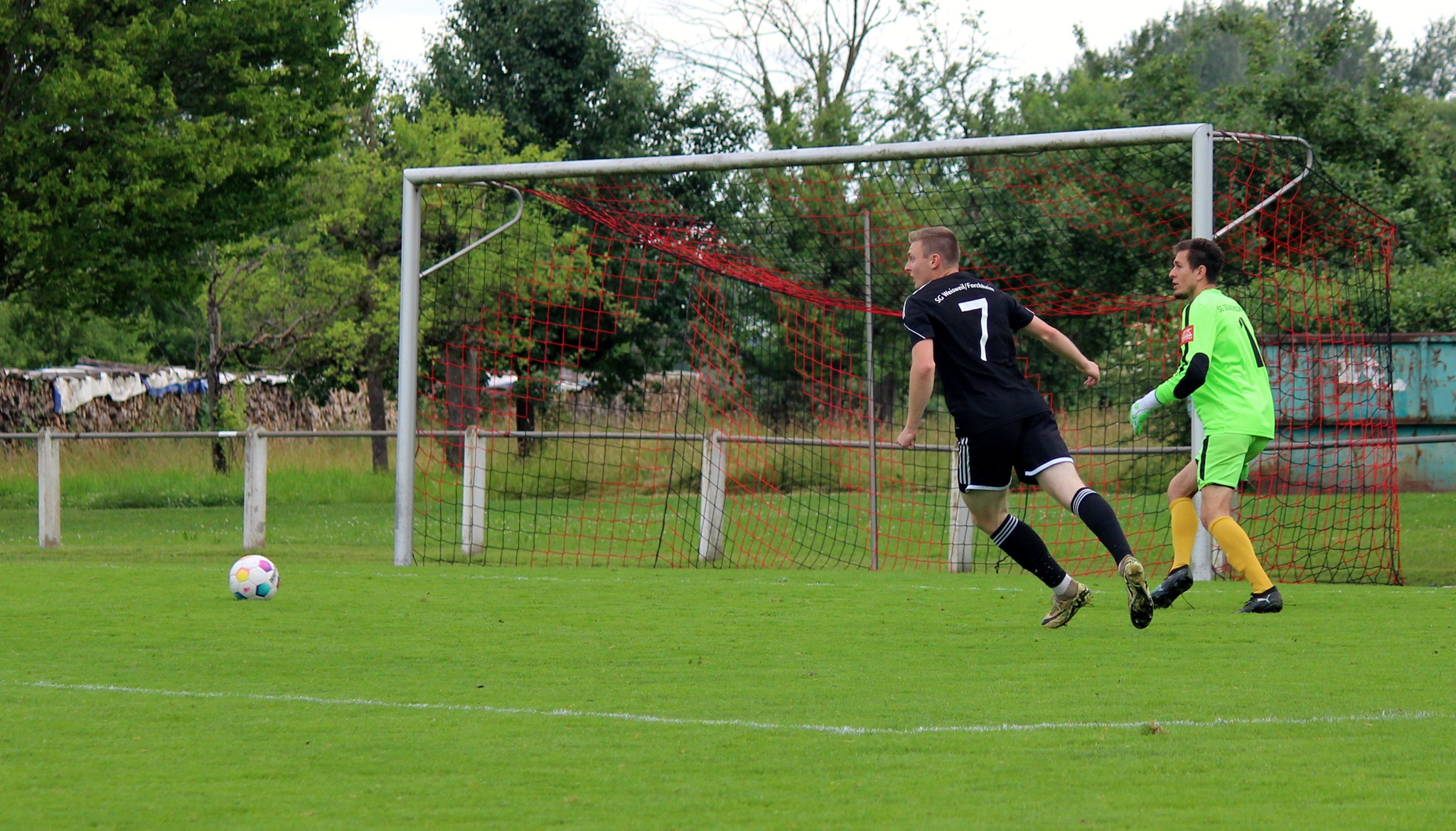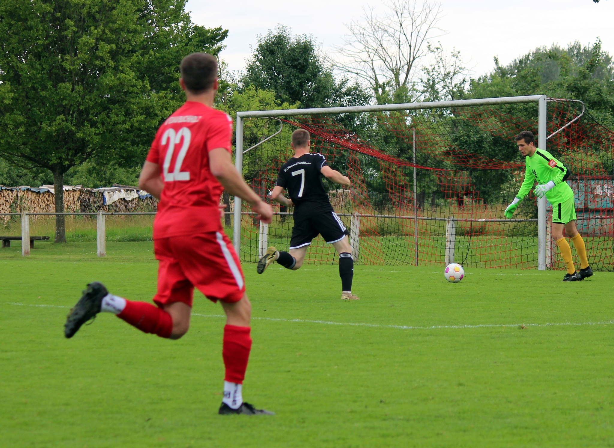 Mit einem Freistoßtreffer zum 2:1 in der 93. Spielminute entschied Lukas Pickhardt die packende Spitzenbegegnung zugunsten der Einheimischen. Zuvor hatten die Zuschauer ein gutes Kreisligaspiel gesehen, in dem beide Teams versuchten mit spielerischen Mitteln zum Torerfolg zu kommen. Aaron Striegel mit einem Sahnetag im Tor des Gastgebers verhinderte mehrfach einen Rückstand und so verdiente sich der Gast in der 2. Hälfte die Führung (72.)