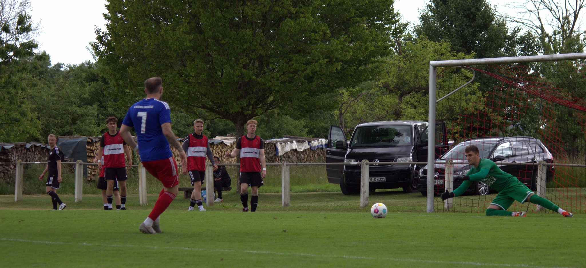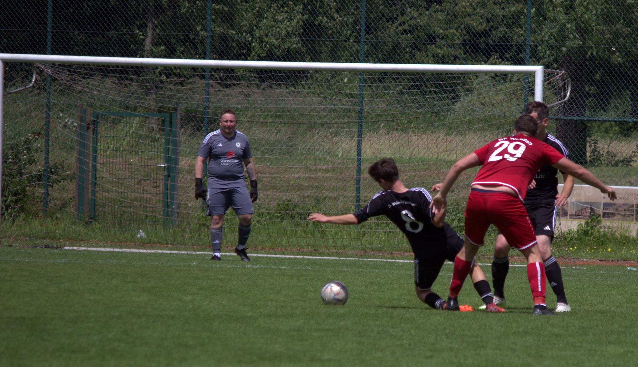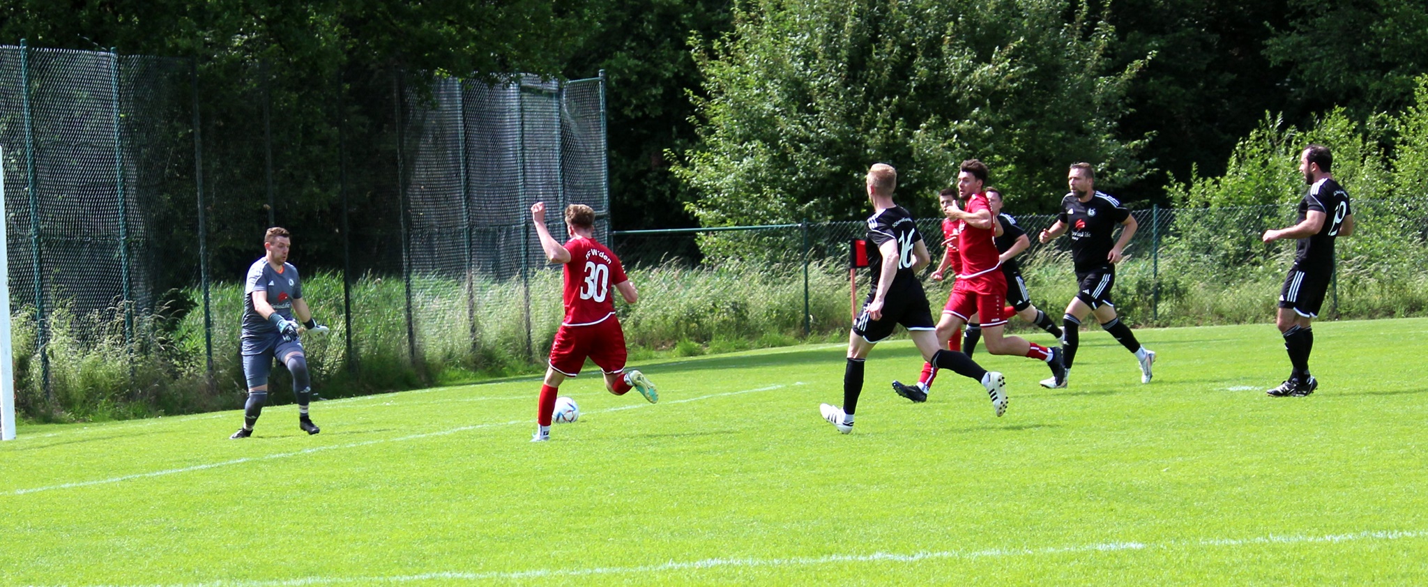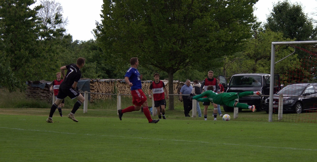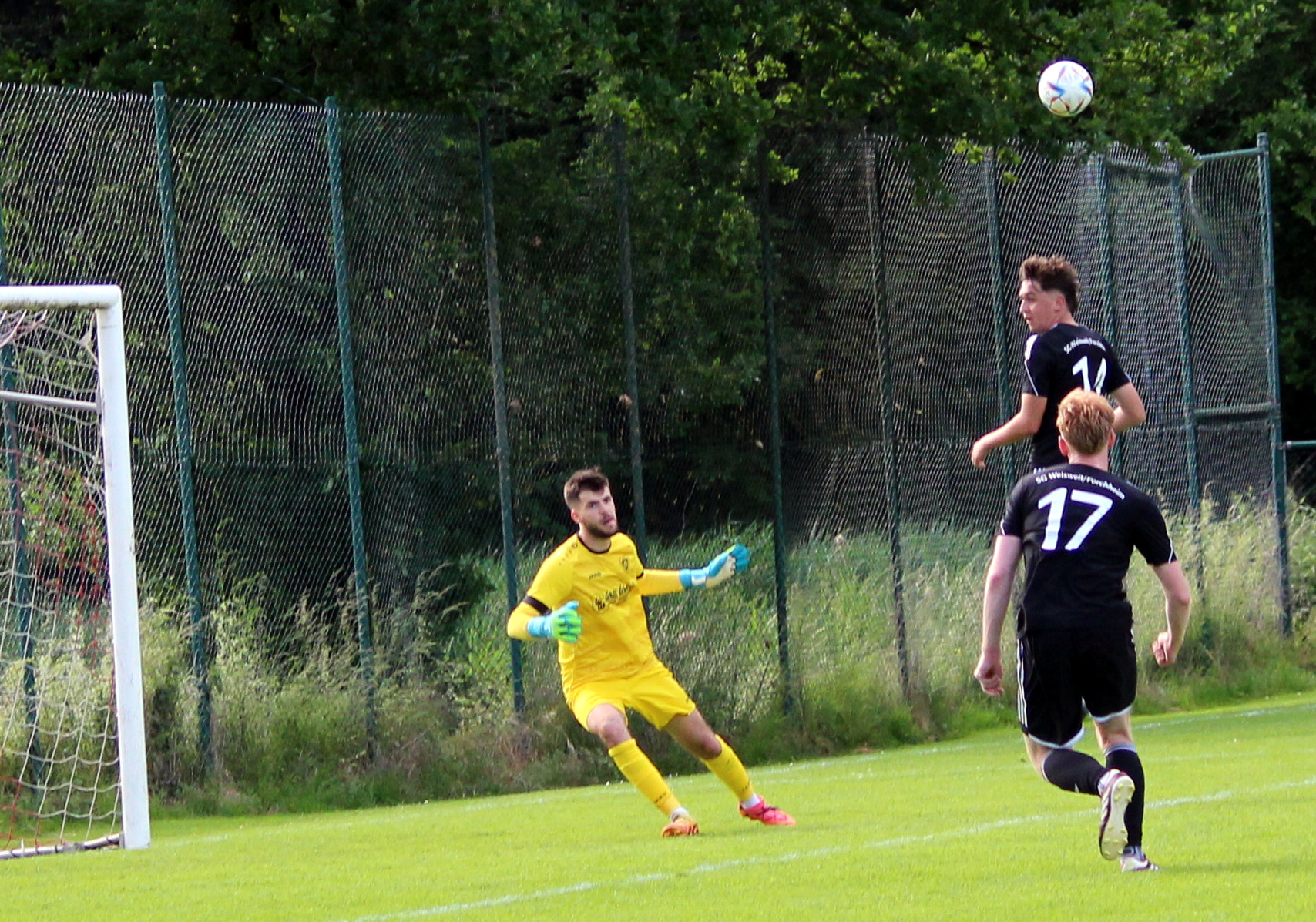 Mit einem Freistoßtreffer zum 2:1 in der 93. Spielminute entschied Lukas Pickhardt die packende Spitzenbegegnung zugunsten der Einheimischen. Zuvor hatten die Zuschauer ein gutes Kreisligaspiel gesehen, in dem beide Teams versuchten mit spielerischen Mitteln zum Torerfolg zu kommen. Aaron Striegel mit einem Sahnetag im Tor des Gastgebers verhinderte mehrfach einen Rückstand und so verdiente sich der Gast in der 2. Hälfte die Führung (72.)