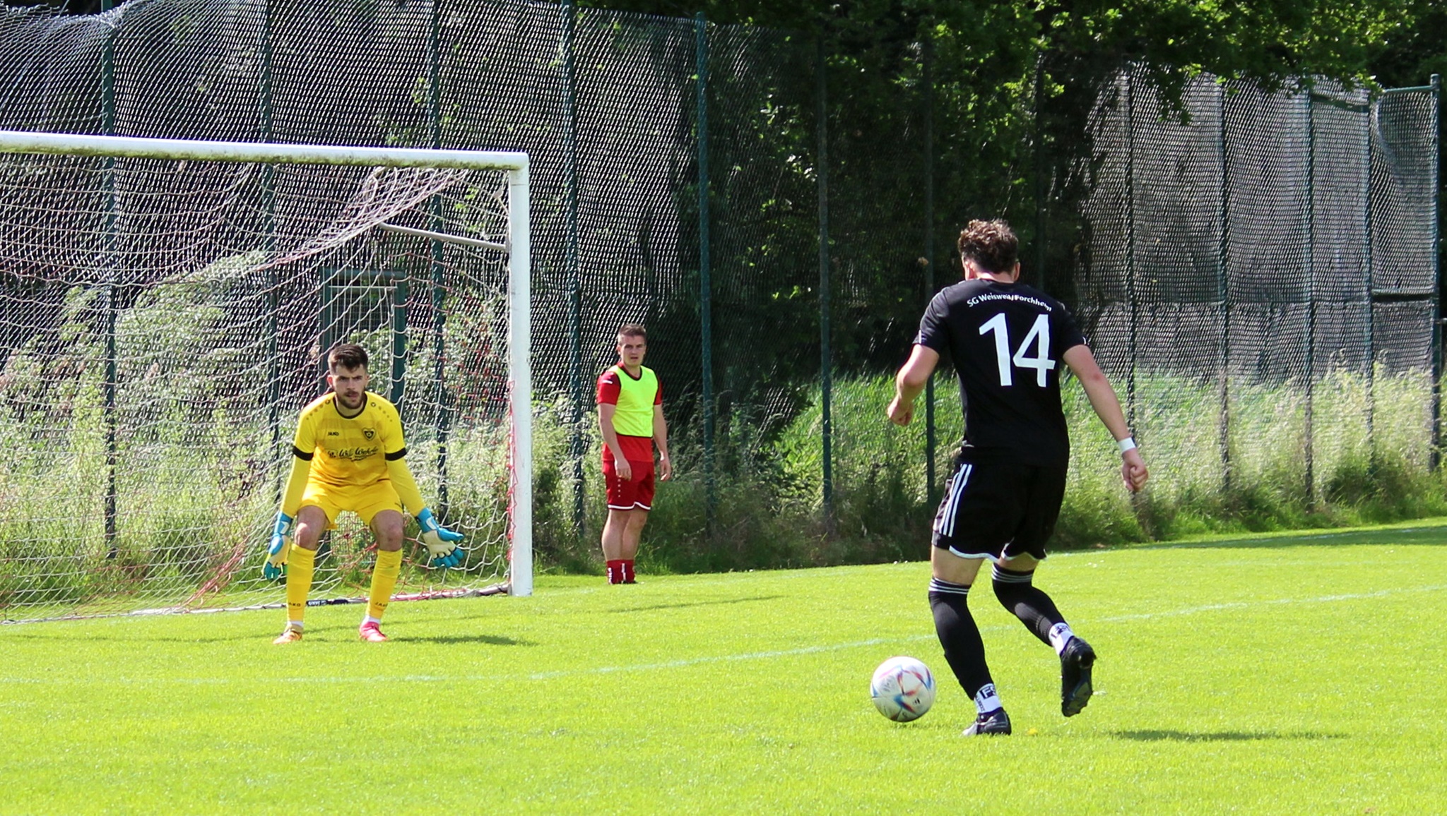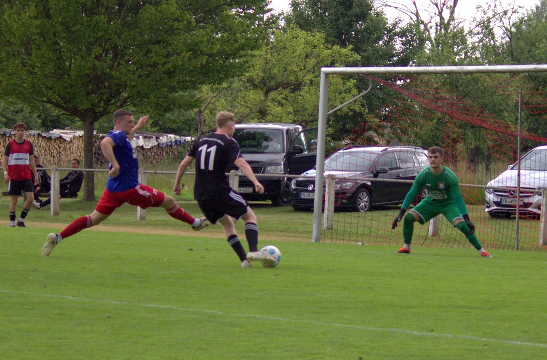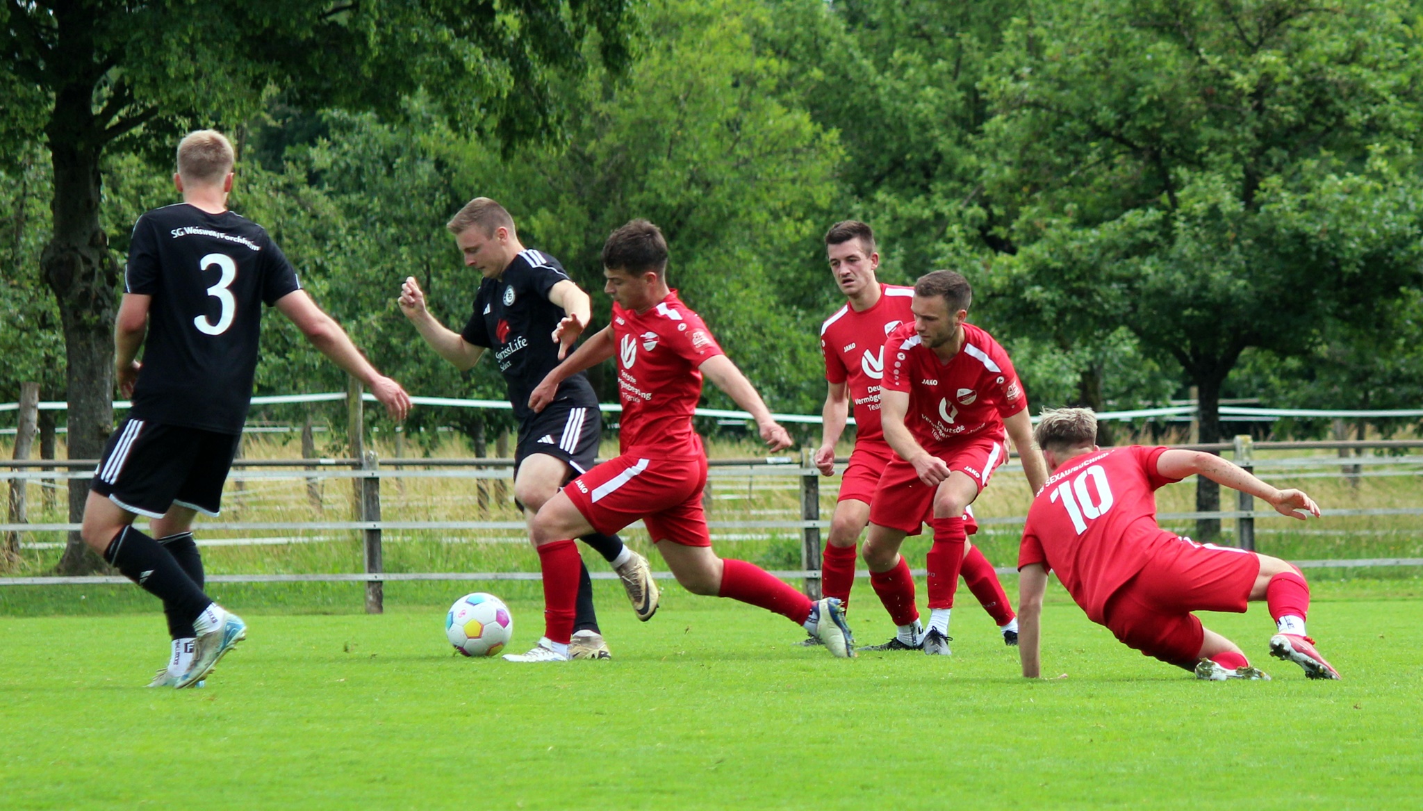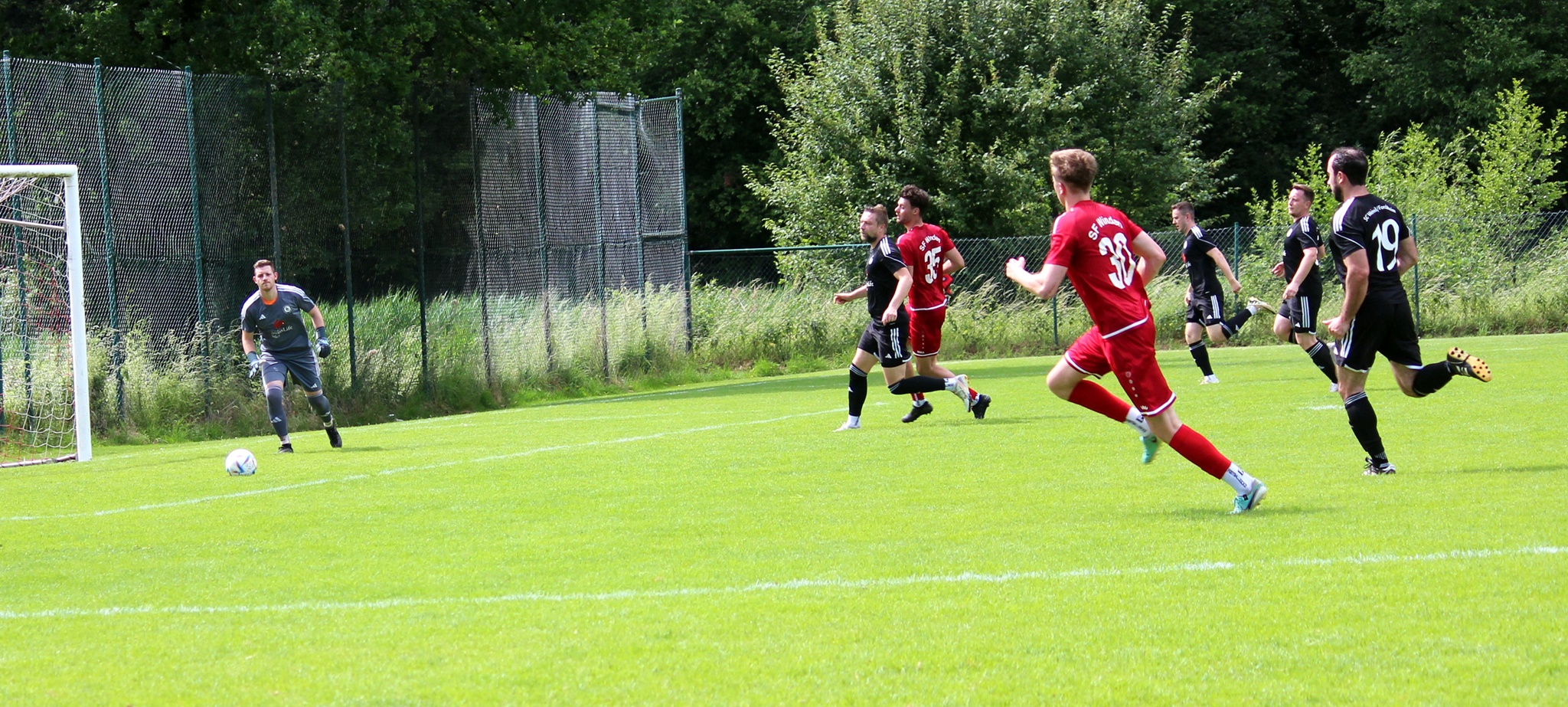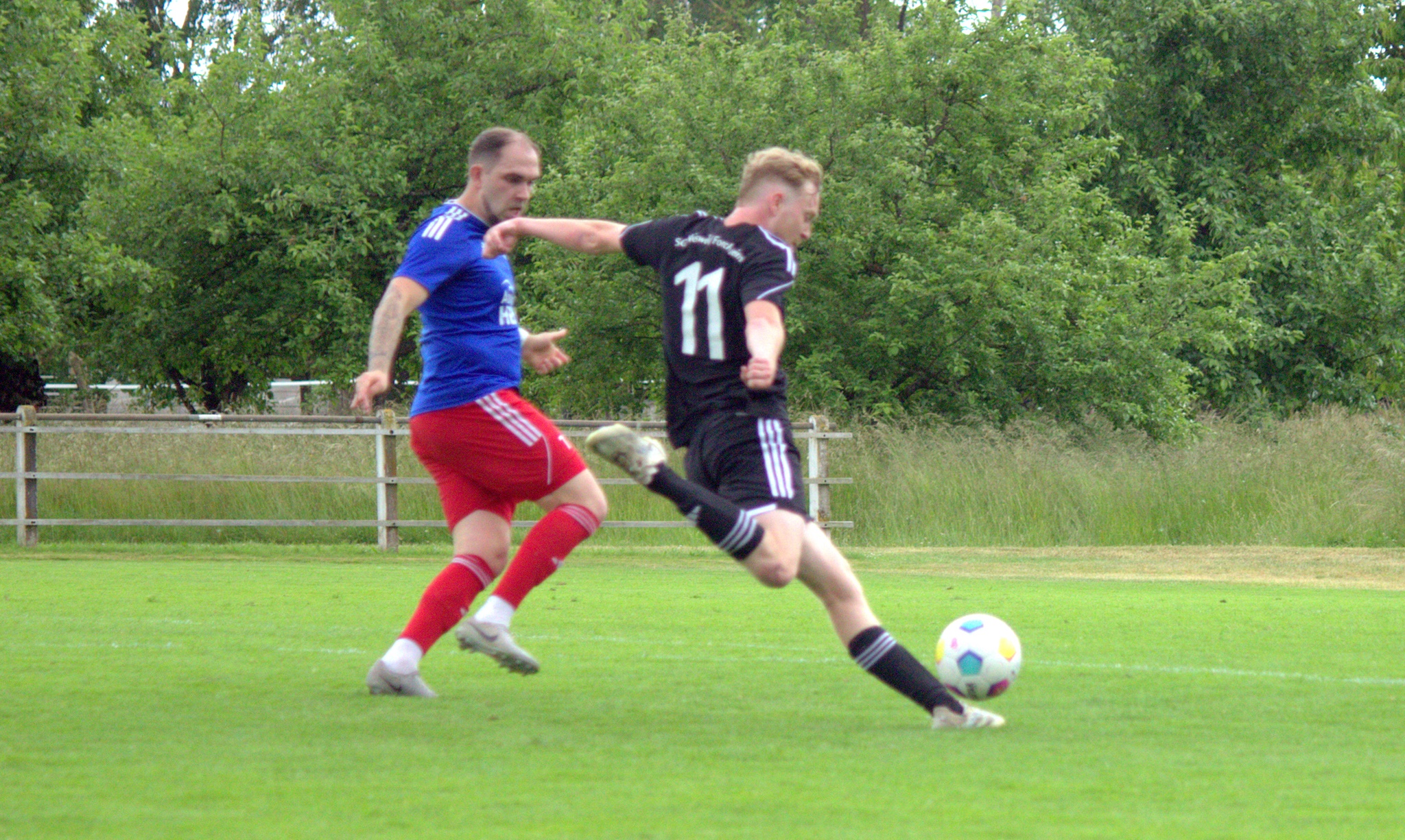 Mit einem Freistoßtreffer zum 2:1 in der 93. Spielminute entschied Lukas Pickhardt die packende Spitzenbegegnung zugunsten der Einheimischen. Zuvor hatten die Zuschauer ein gutes Kreisligaspiel gesehen, in dem beide Teams versuchten mit spielerischen Mitteln zum Torerfolg zu kommen. Aaron Striegel mit einem Sahnetag im Tor des Gastgebers verhinderte mehrfach einen Rückstand und so verdiente sich der Gast in der 2. Hälfte die Führung (72.)