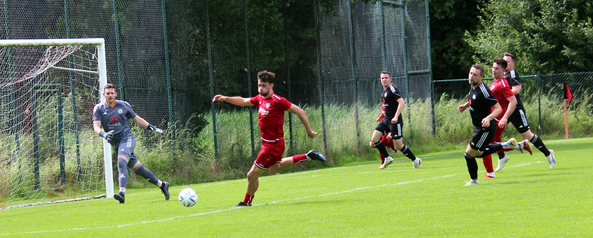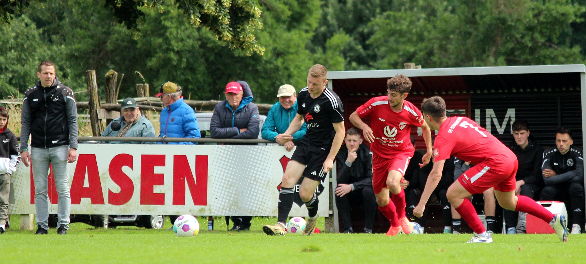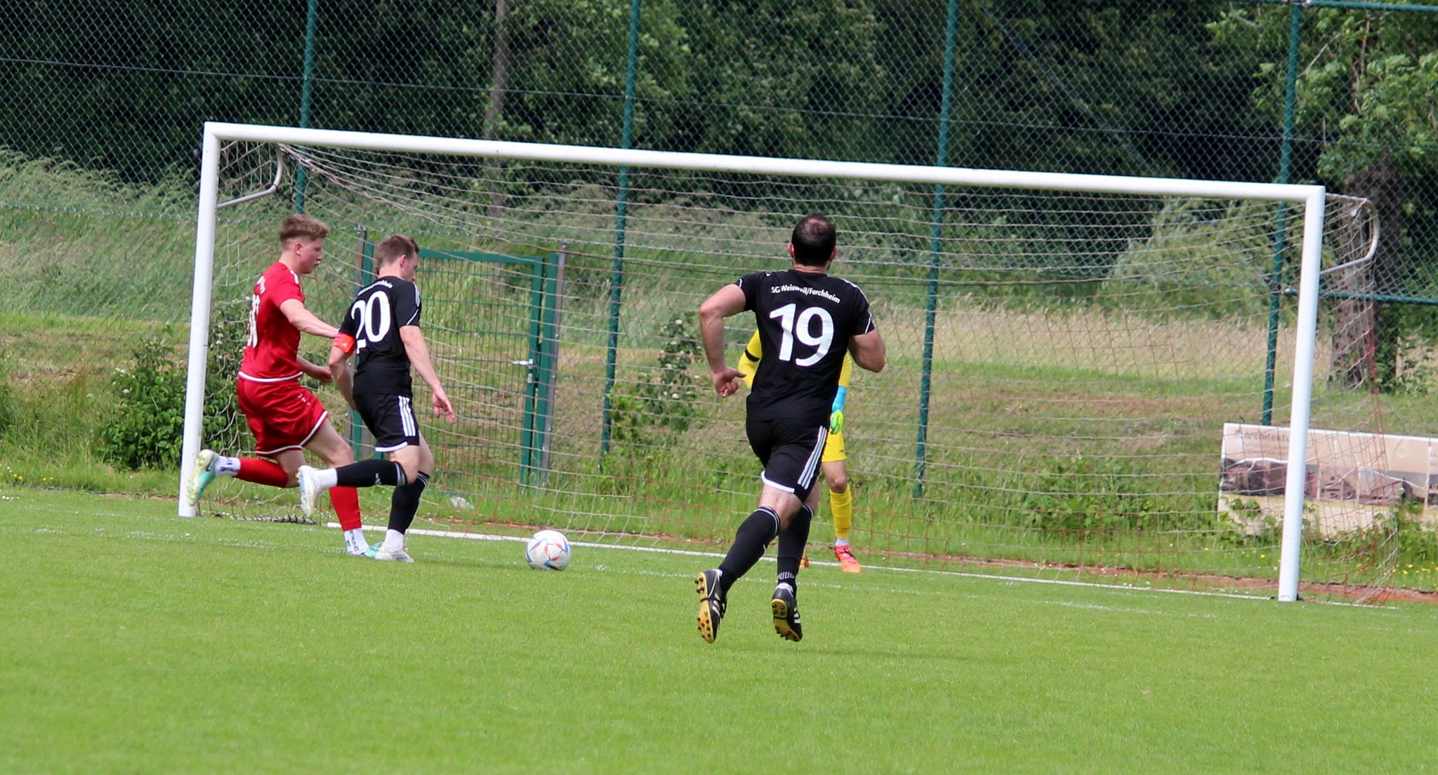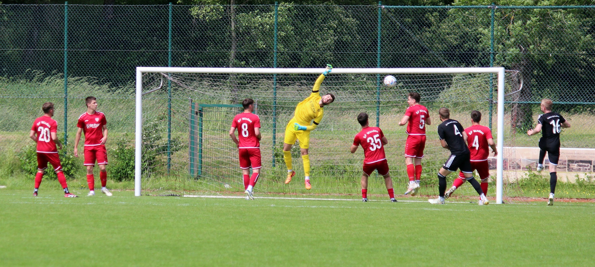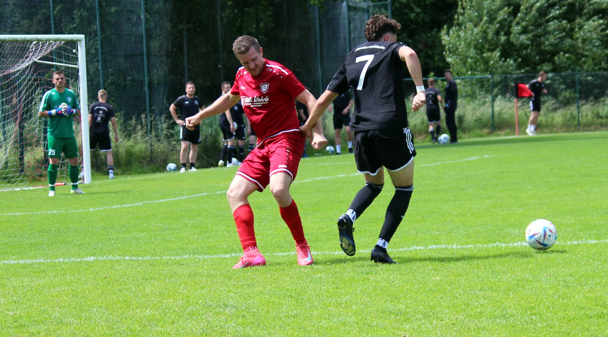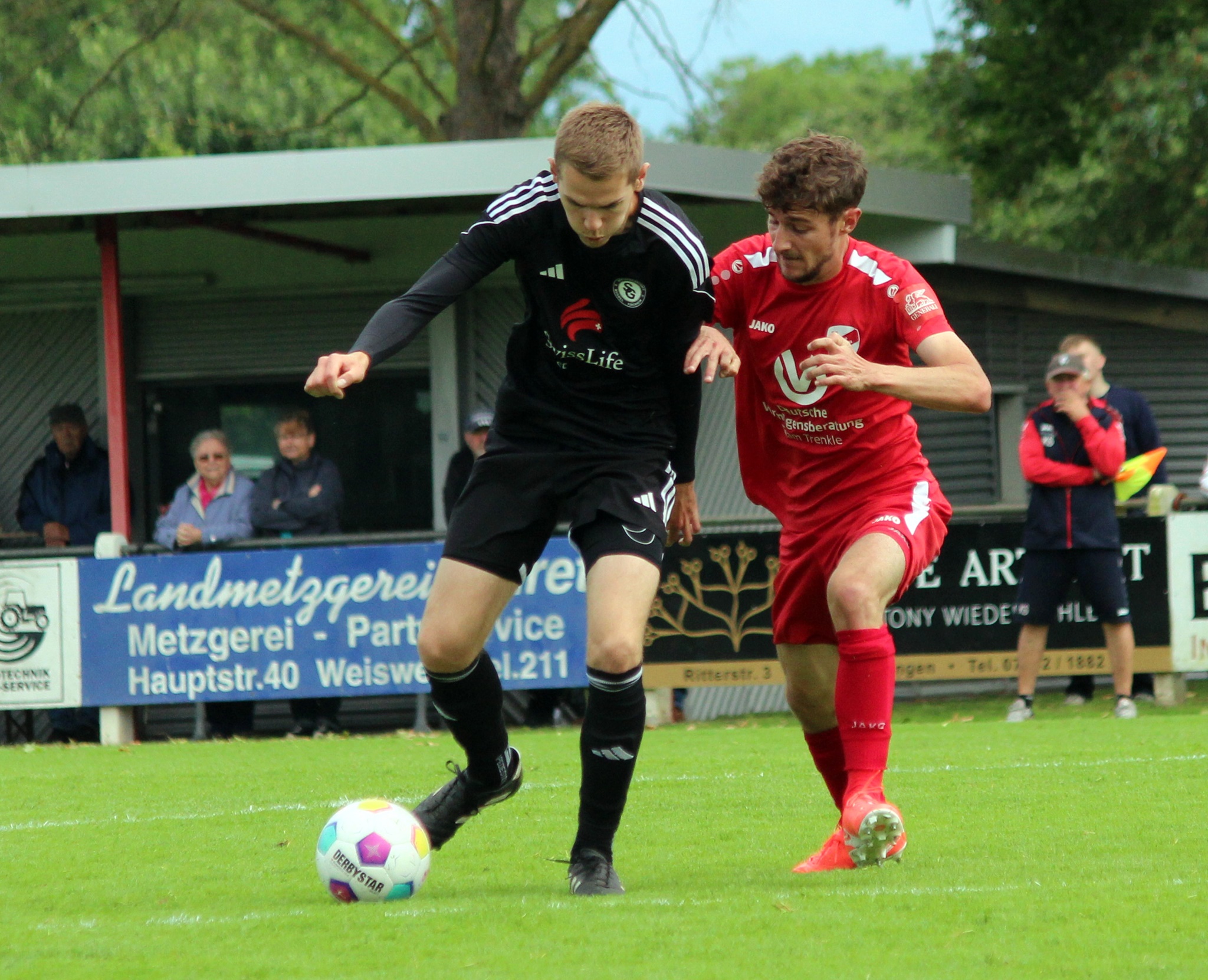 Mit einem Freistoßtreffer zum 2:1 in der 93. Spielminute entschied Lukas Pickhardt die packende Spitzenbegegnung zugunsten der Einheimischen. Zuvor hatten die Zuschauer ein gutes Kreisligaspiel gesehen, in dem beide Teams versuchten mit spielerischen Mitteln zum Torerfolg zu kommen. Aaron Striegel mit einem Sahnetag im Tor des Gastgebers verhinderte mehrfach einen Rückstand und so verdiente sich der Gast in der 2. Hälfte die Führung (72.)