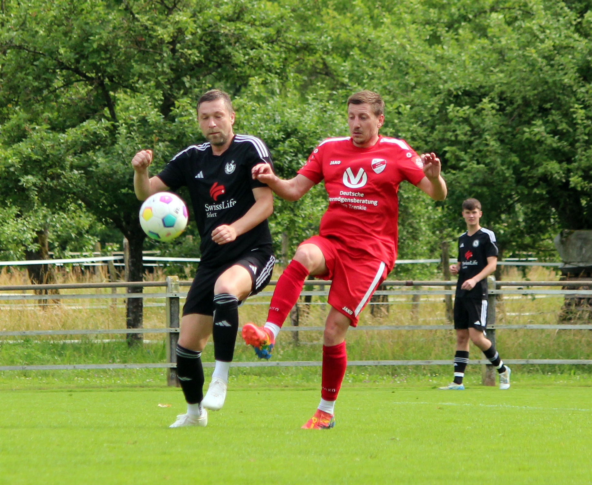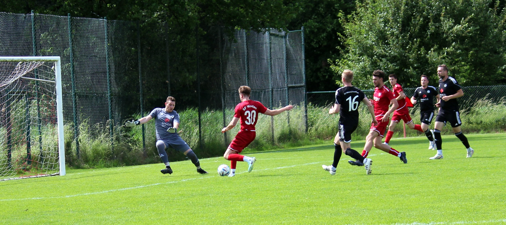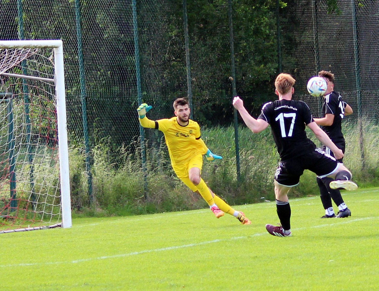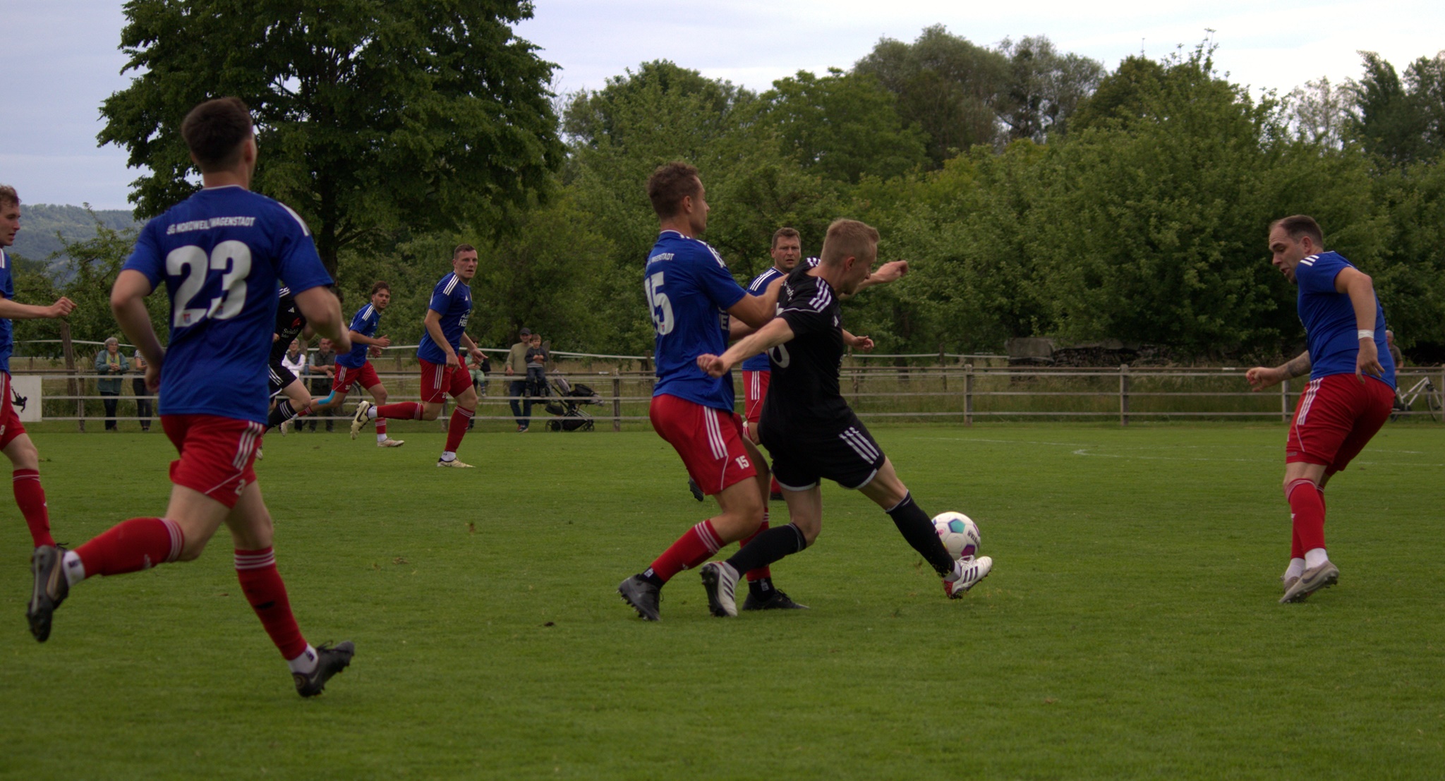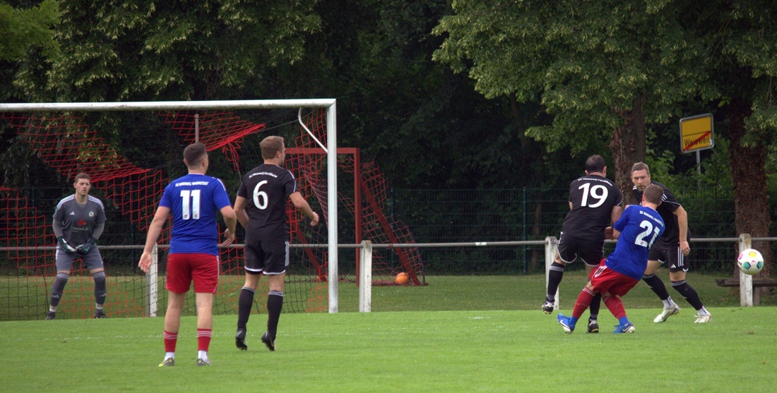 Mit einem Freistoßtreffer zum 2:1 in der 93. Spielminute entschied Lukas Pickhardt die packende Spitzenbegegnung zugunsten der Einheimischen. Zuvor hatten die Zuschauer ein gutes Kreisligaspiel gesehen, in dem beide Teams versuchten mit spielerischen Mitteln zum Torerfolg zu kommen. Aaron Striegel mit einem Sahnetag im Tor des Gastgebers verhinderte mehrfach einen Rückstand und so verdiente sich der Gast in der 2. Hälfte die Führung (72.)