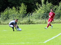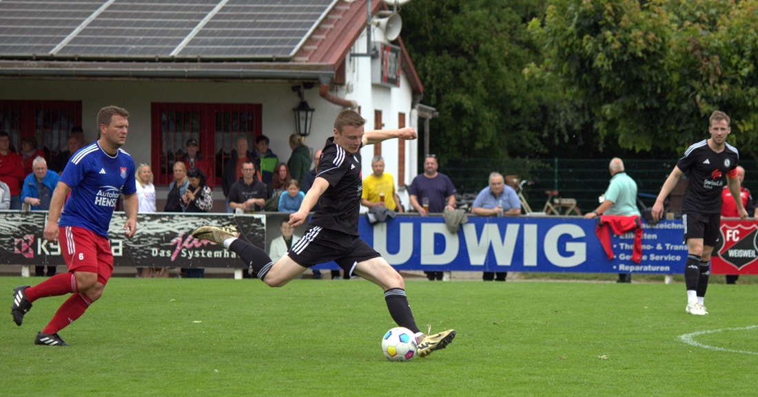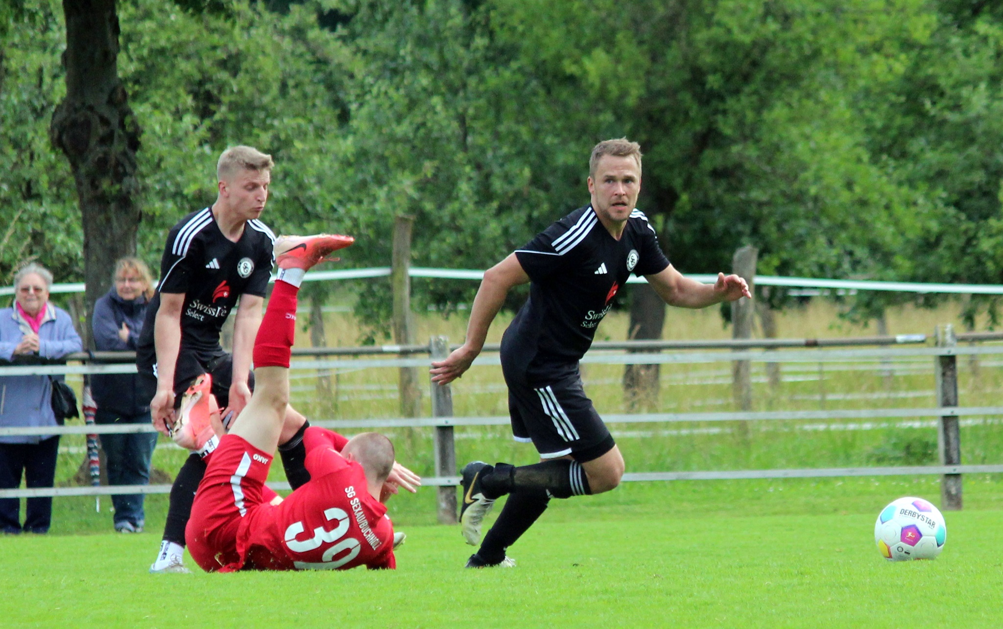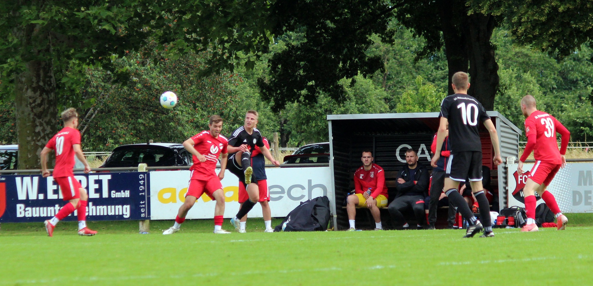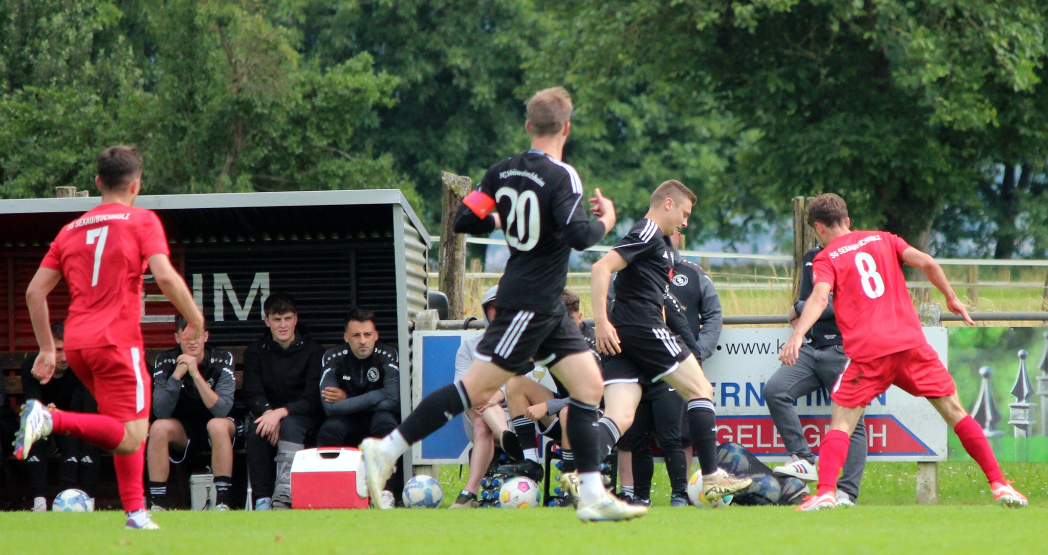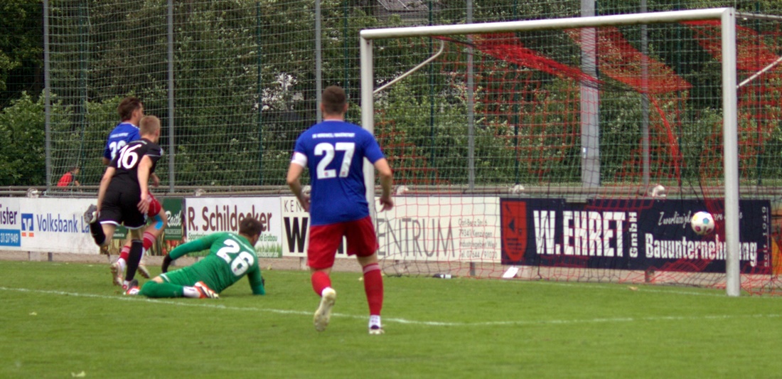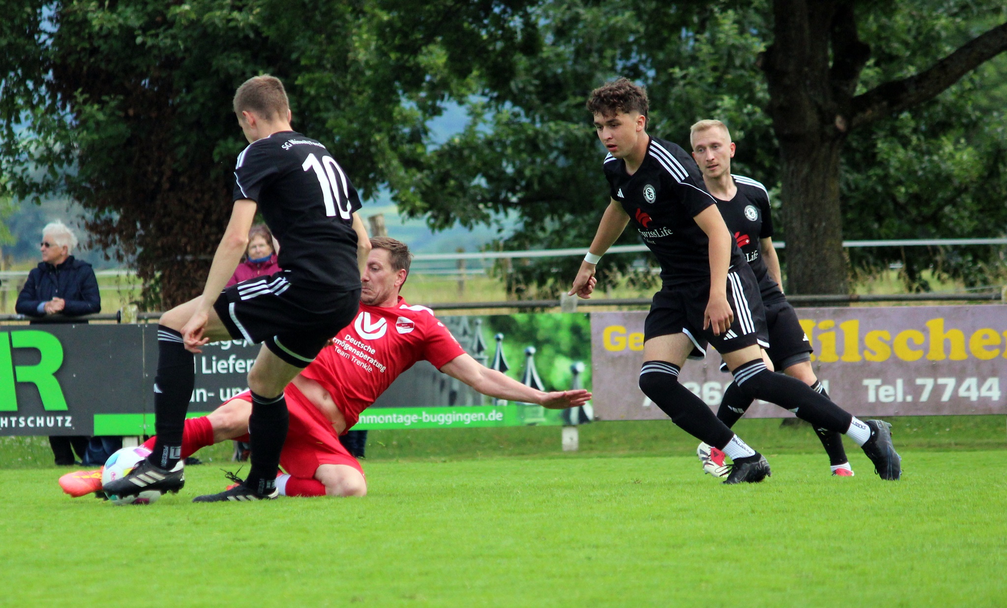 Mit einem Freistoßtreffer zum 2:1 in der 93. Spielminute entschied Lukas Pickhardt die packende Spitzenbegegnung zugunsten der Einheimischen. Zuvor hatten die Zuschauer ein gutes Kreisligaspiel gesehen, in dem beide Teams versuchten mit spielerischen Mitteln zum Torerfolg zu kommen. Aaron Striegel mit einem Sahnetag im Tor des Gastgebers verhinderte mehrfach einen Rückstand und so verdiente sich der Gast in der 2. Hälfte die Führung (72.)