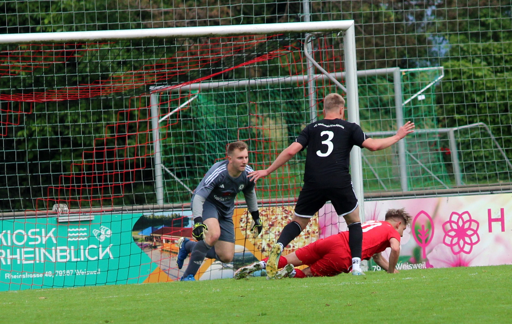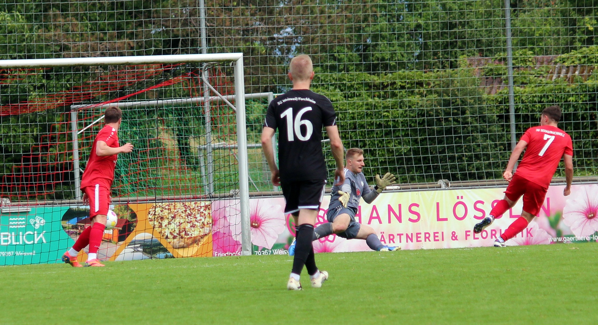 Die SG Weisweil/Forchheim fand bei tropischen Temperaturen auf dem Kunstrasenplatz zu keinem Zeitpunkt in das Spiel. Als nach einer halben Stunde Aron Striegel einen Foulelfmeter parierte stachelte dies den Gastgeber mehr an, als es die SG motivierte. So kam der Gastgeber verdientermaßen noch vor der Pause zu m 2:0 was auch schon den Endstand darstellte, denn der ausgelaugten SG fiel auch gegen dezimierte Freiburger nicht wirklich was ein.