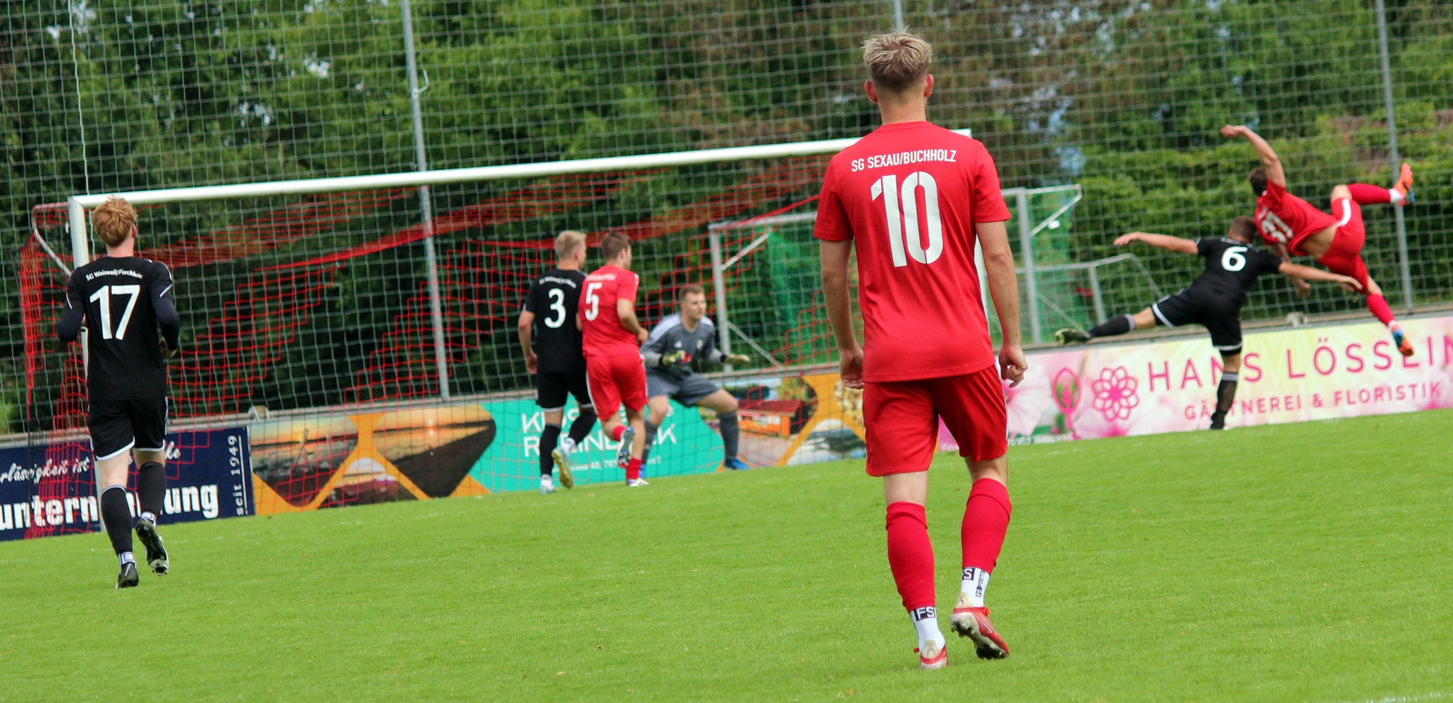 Schon nach 12 Minuten lag die SGW/F durch tatkräftige Mithilfe bei den ersten beiden Treffern beim Spitzenreiter SG Sexau/Buchholz mit 3:0 im Rückstand. Nach einer halben Stunde konnte die Gastmannschaft das Spiel bis zur Pause offen gestalten. Nach dem Seitenwechsel über nahm der Gast zusehends das Spielgeschehen und konnte durch 2 Freistoßtore von Lukas Pickhardt den Anschluss herstellen (59,78). Nach einer Roten Karte (74) gegen den dreifachen Torschützen Ries lag der Ausgleich mehrfach in der Luft, doch auch eine Elfmeterchance(90) blieb ungenutzt.