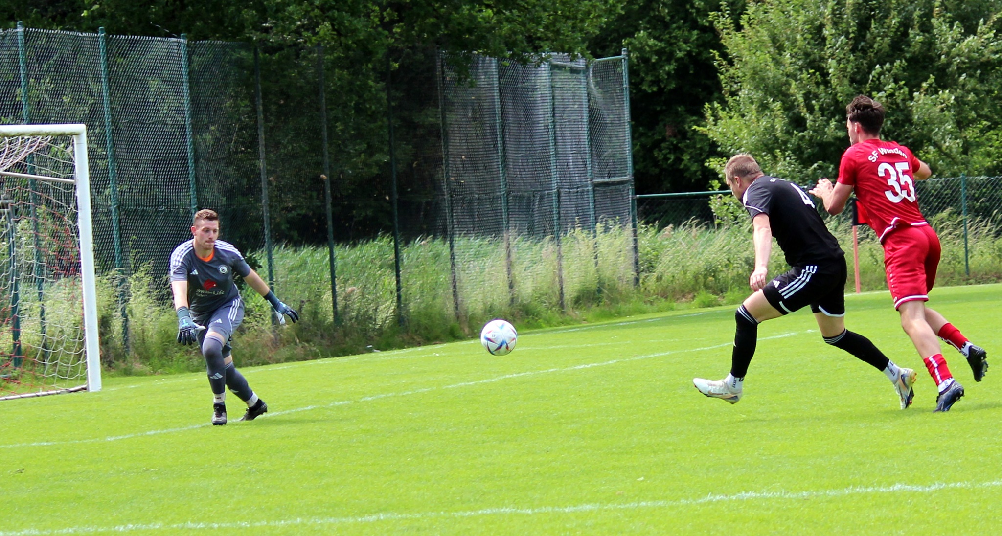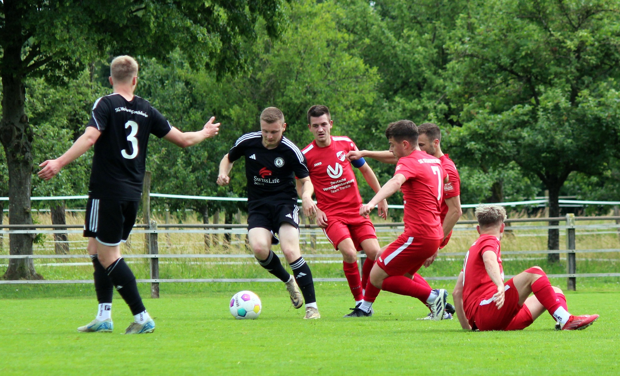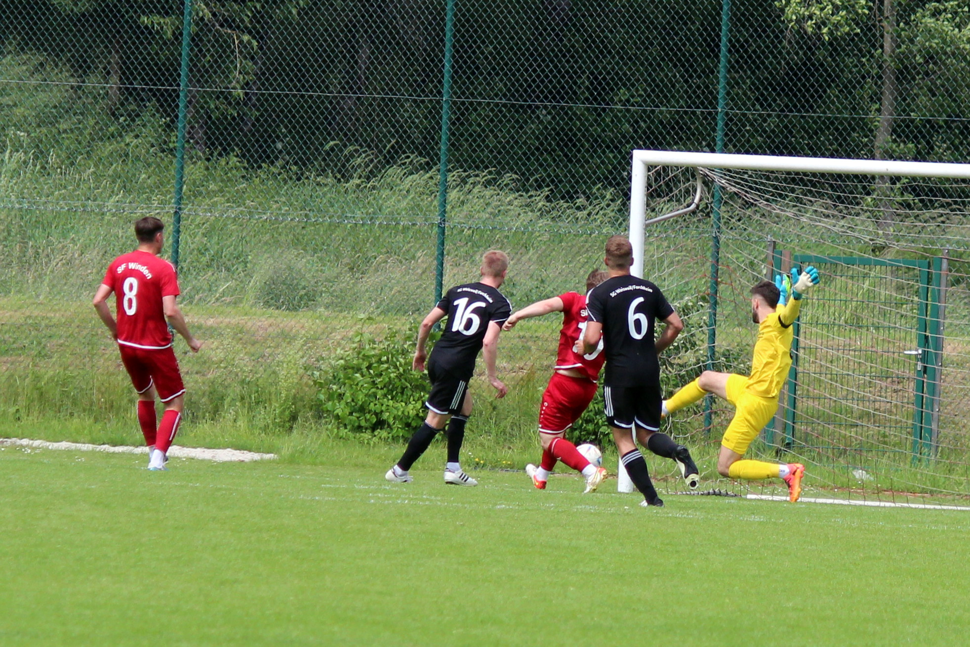 Die Einheimischen wehrten sich gegen die drohende Niederlage und kamen durch Leon Schieble (80.) zum Ausgleich. Als sich beide Teams mit dem gerechten Remis abgefunden hatten, schlug die SGW/F nochmals zu.