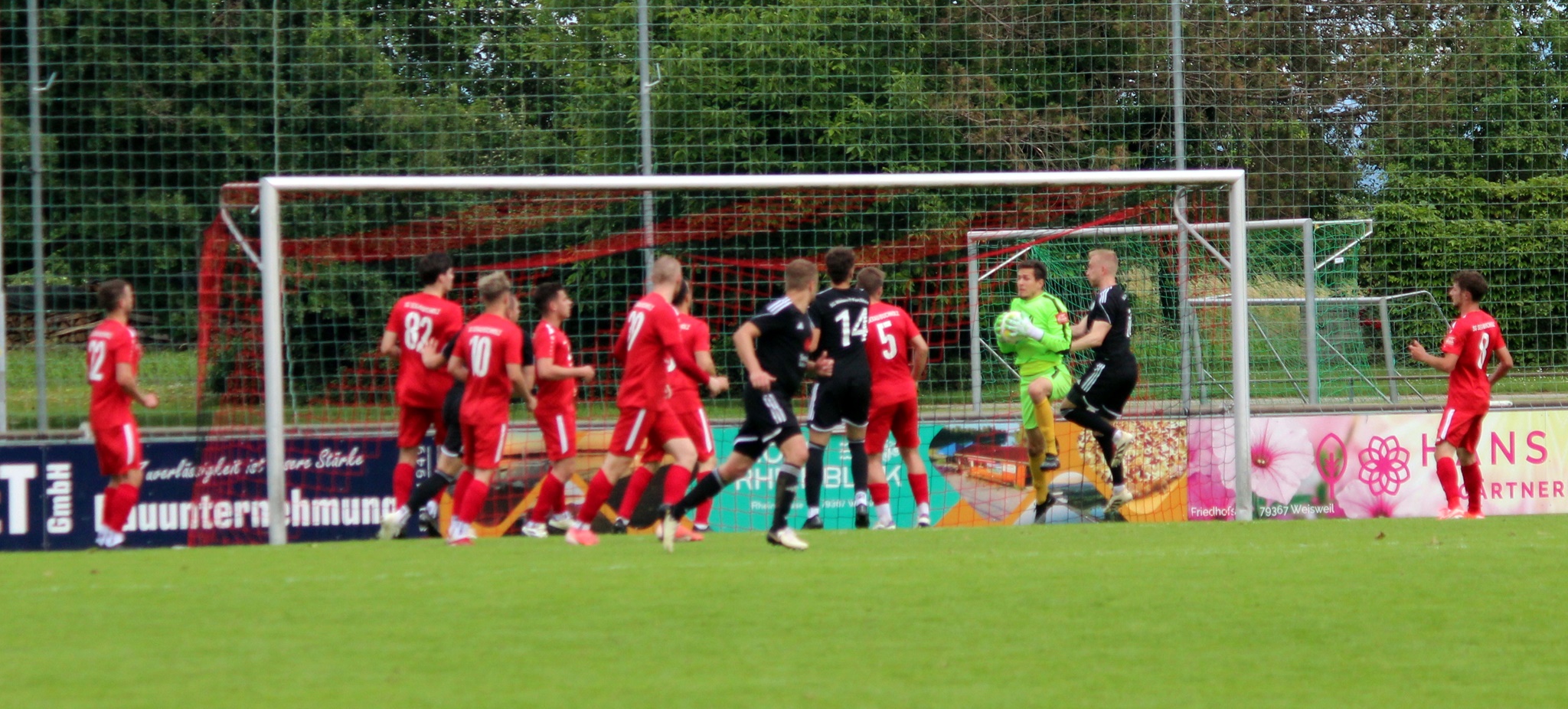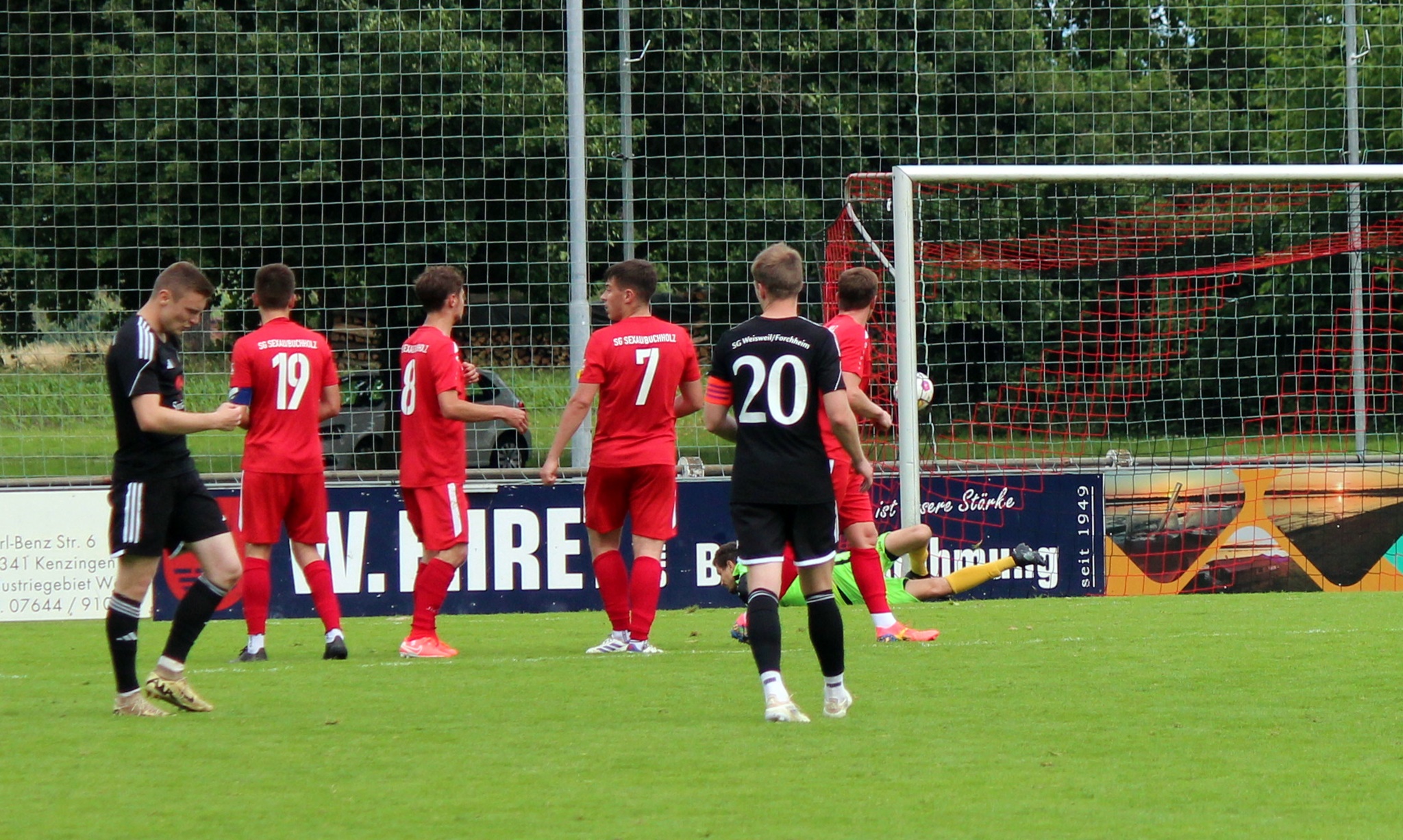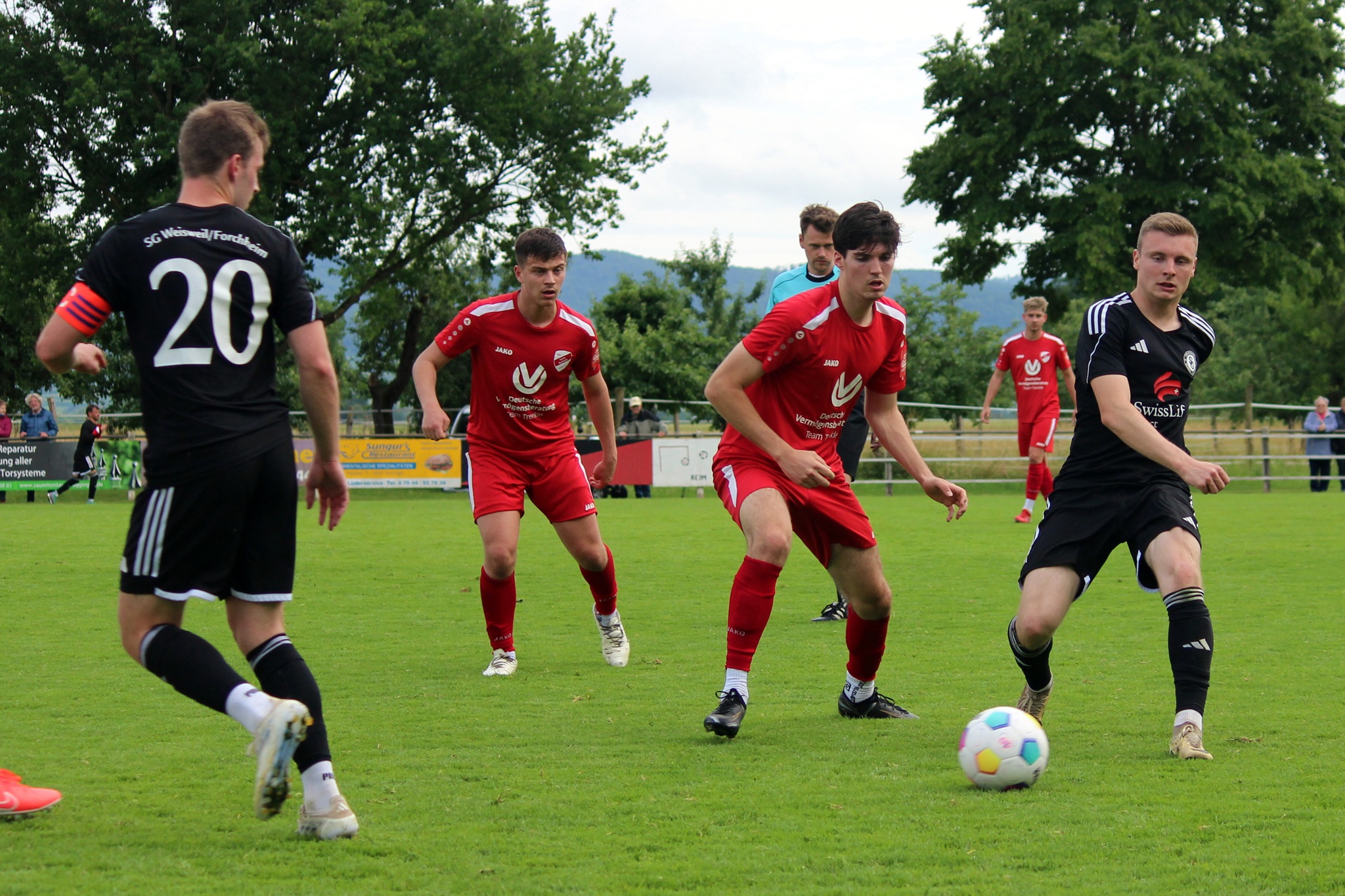 Das erste Heimspiel der neuen Spielzeit begann für die SG WF sehr positiv. Nach der Auftaktniederlage in Königschaffhausen war man auf ein Erfolgserlebnis aus. Bereits nach 8 Minute nutzte Till Stöcklin einen Abwehrschnitzer der Gäste zum 1:0. Bereits nach 15 Minuten musste man selbst gegen spielerisch gut aggierende Gäste den Ausgleich hinnehmen. Die warf die SG jedoch nicht zurück. Man spielte defensiv sehr konsequent und wartete auf Konterchancen. Eine davon nutzte erneut Till Stöcklin zum 2:1 in der 35. Minute. Nach dem Wechsel waren die Gäste kurz am Drücker zum Ausgleich jedoch konnte man sich befreien. Durch einen Doppelpack des eingewechselten Marvin Weis in der 69. Und 71. Minute zog man auf 4:1 davon. Der Widerstand der Gäste war gebrochen. Kapitain Lukas Pickhard erhöhte per Foulelfmeter in der.77 auf 5:1. Louis Krohn und Manuel Ritter machten mit ihren Treffern in der Schlussphase den ersten Saisonsieg zum 7:1 perfekt.
