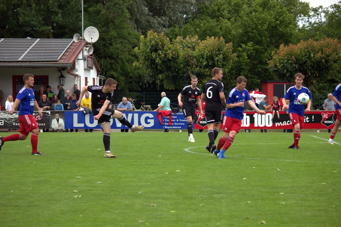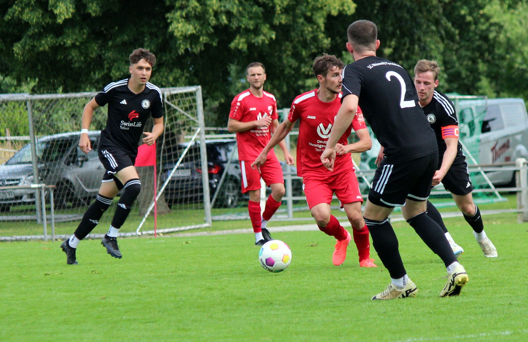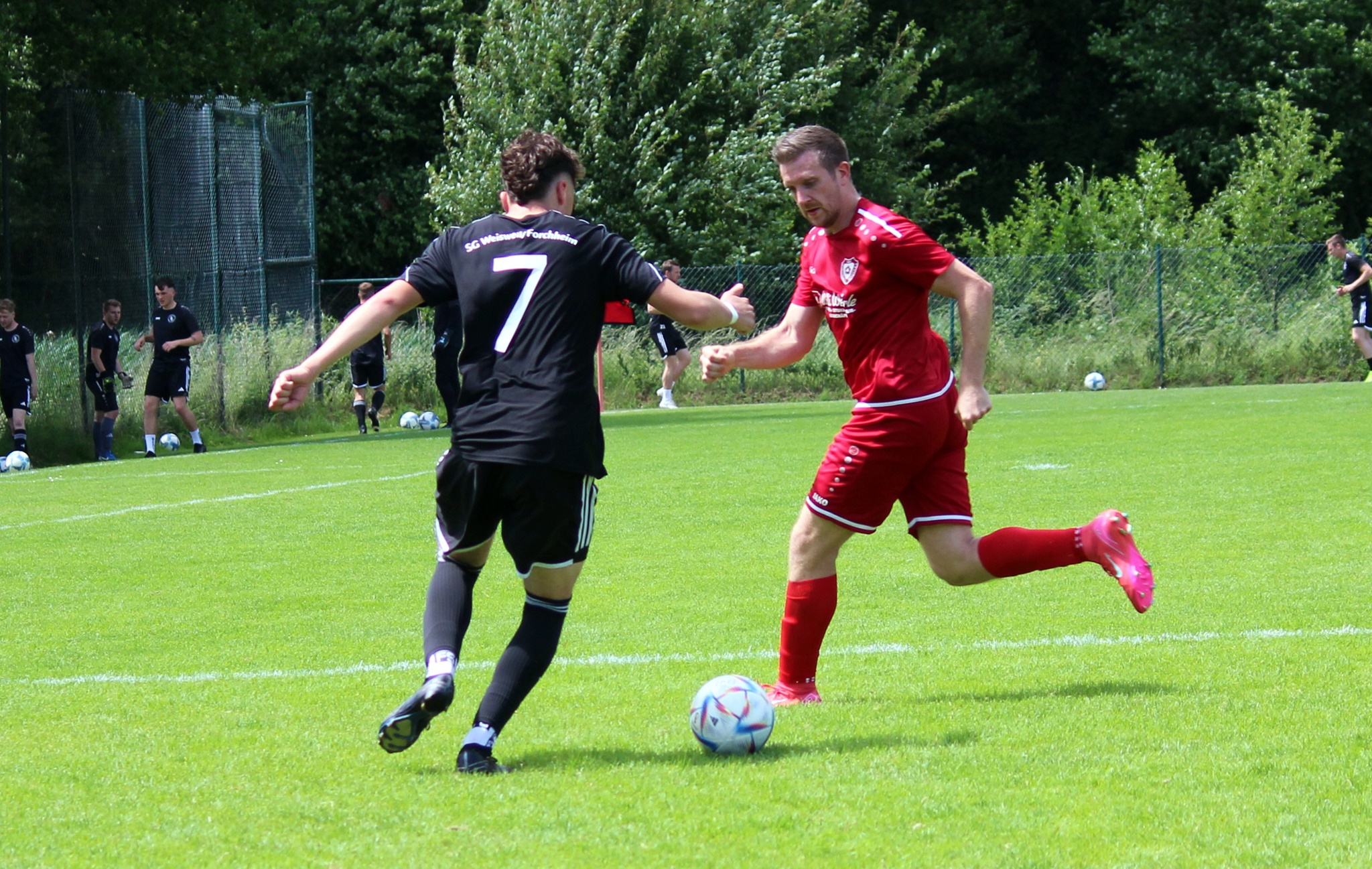 Das erste Heimspiel der neuen Spielzeit begann für die SG WF sehr positiv. Nach der Auftaktniederlage in Königschaffhausen war man auf ein Erfolgserlebnis aus. Bereits nach 8 Minute nutzte Till Stöcklin einen Abwehrschnitzer der Gäste zum 1:0. Bereits nach 15 Minuten musste man selbst gegen spielerisch gut aggierende Gäste den Ausgleich hinnehmen. Die warf die SG jedoch nicht zurück. Man spielte defensiv sehr konsequent und wartete auf Konterchancen. Eine davon nutzte erneut Till Stöcklin zum 2:1 in der 35. Minute. Nach dem Wechsel waren die Gäste kurz am Drücker zum Ausgleich jedoch konnte man sich befreien. Durch einen Doppelpack des eingewechselten Marvin Weis in der 69. Und 71. Minute zog man auf 4:1 davon. Der Widerstand der Gäste war gebrochen. Kapitain Lukas Pickhard erhöhte per Foulelfmeter in der.77 auf 5:1. Louis Krohn und Manuel Ritter machten mit ihren Treffern in der Schlussphase den ersten Saisonsieg zum 7:1 perfekt.