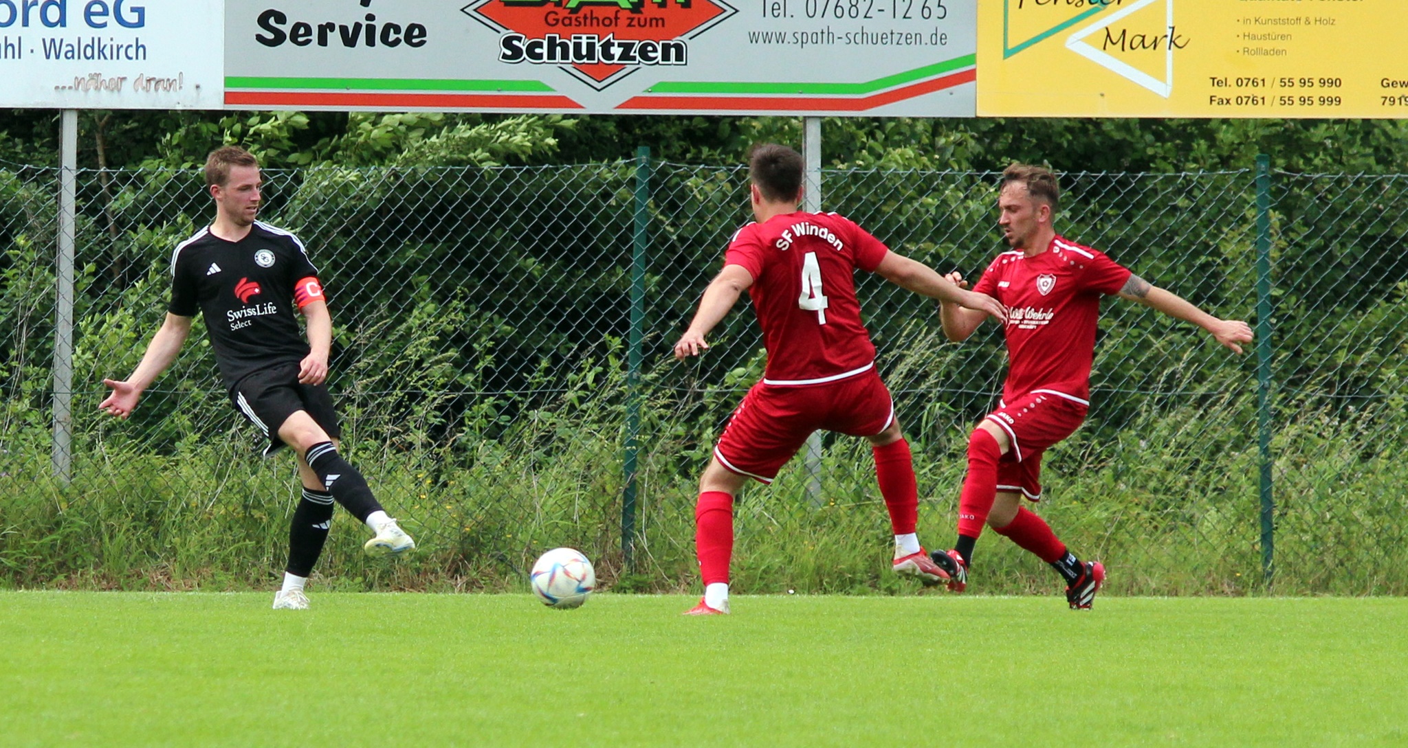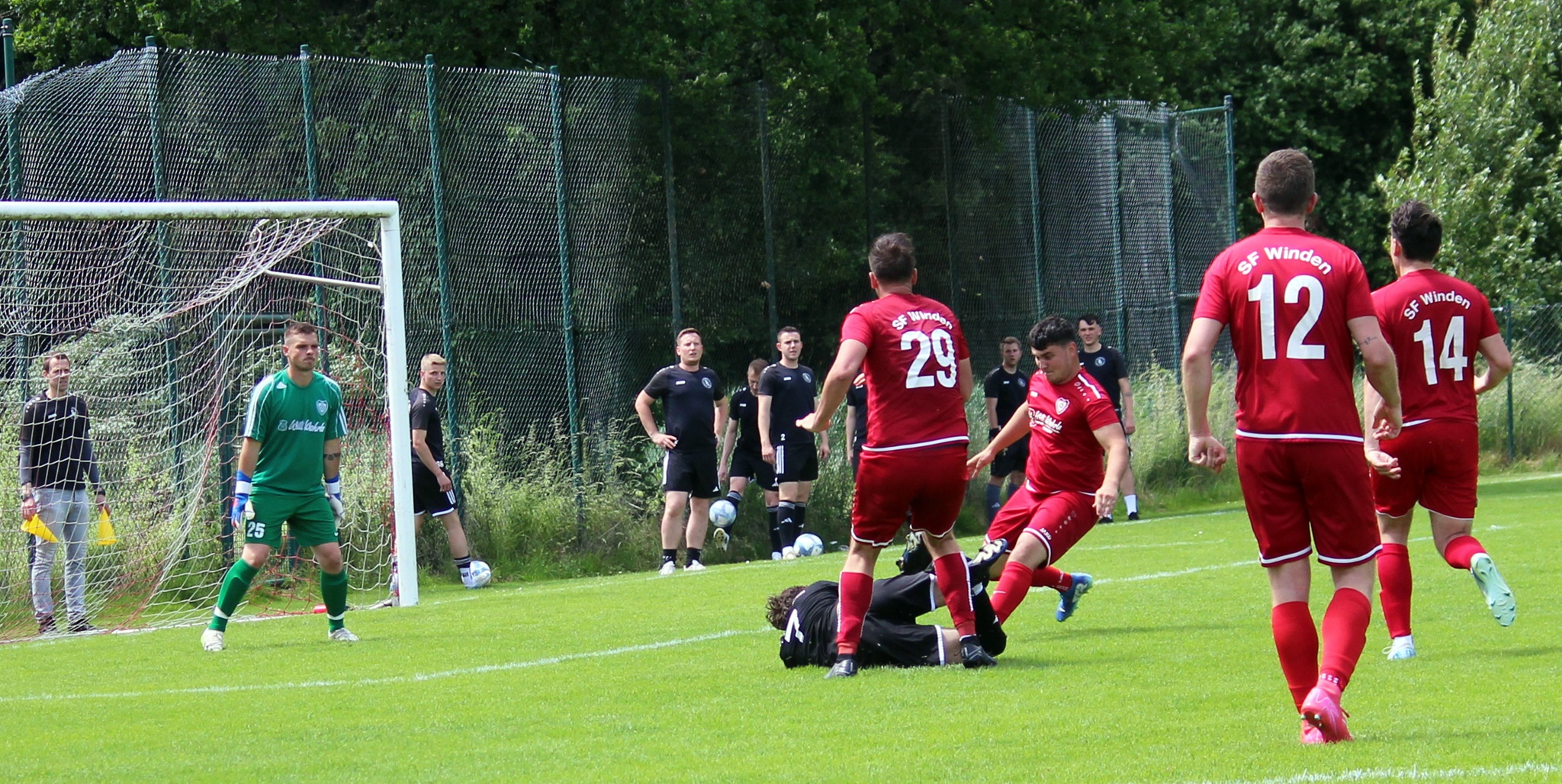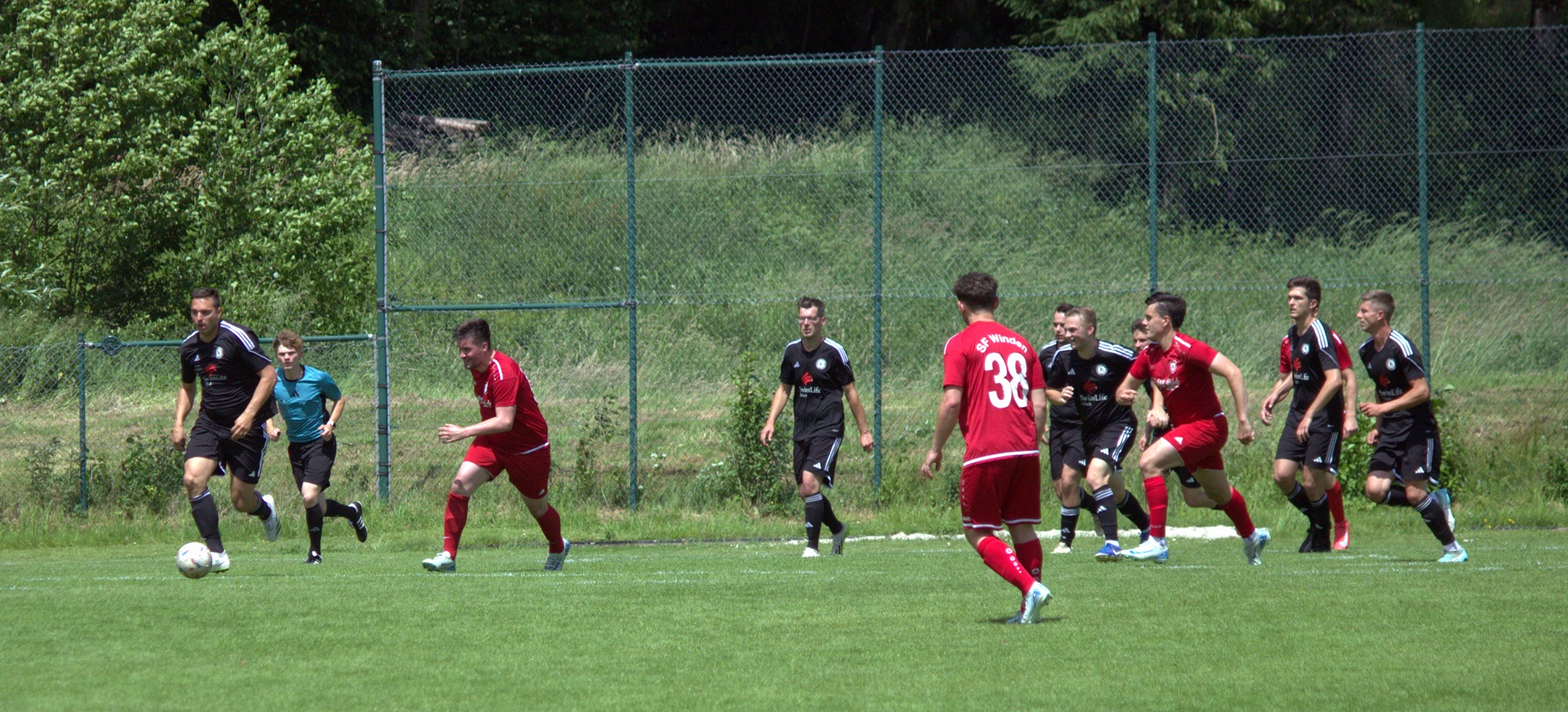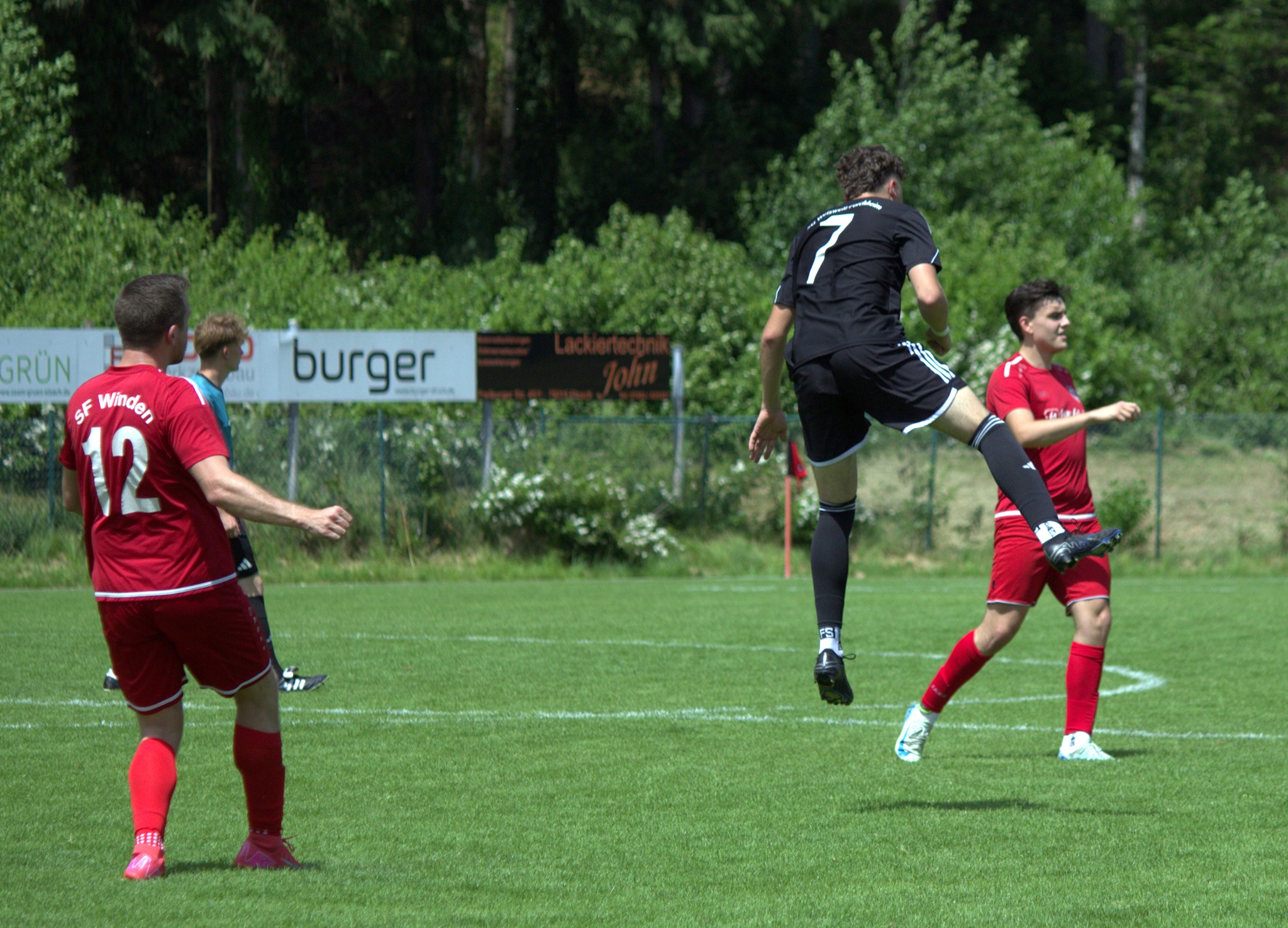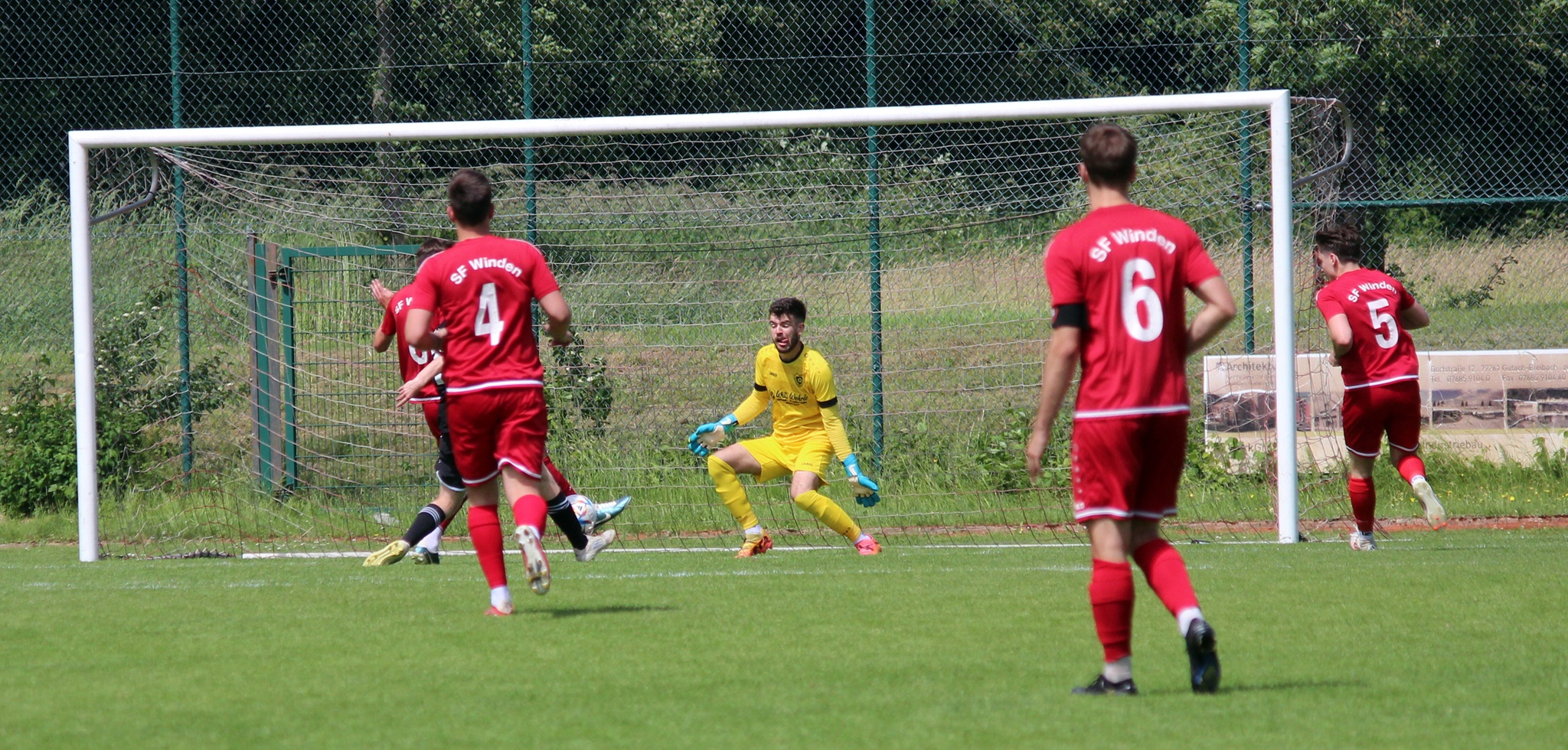 In der 1. Hälfte verlief das Spiel in Winden ziemlich ausgeglichen und die Tore zum 1:1 Pausen-stand fielen ohne große Vorankündigung. Till Stöcklin traf zum 1:1 (32) Die SG musste früh zweimal wechseln, während der Gastgeber mit 3 Wechseln nach der Pause die beste Phase einläutete. Als diese Drangphase überstanden war gelang dem Gastgeber im Anschluss an einen Freistoß der erneute Führungstreffer. (83) zum 2:1 In den verbleibenden Minuten lag der Ausgleich mehrfach in der Luft,der Ball wollte aber nicht mehr in das gegnerische Tor.