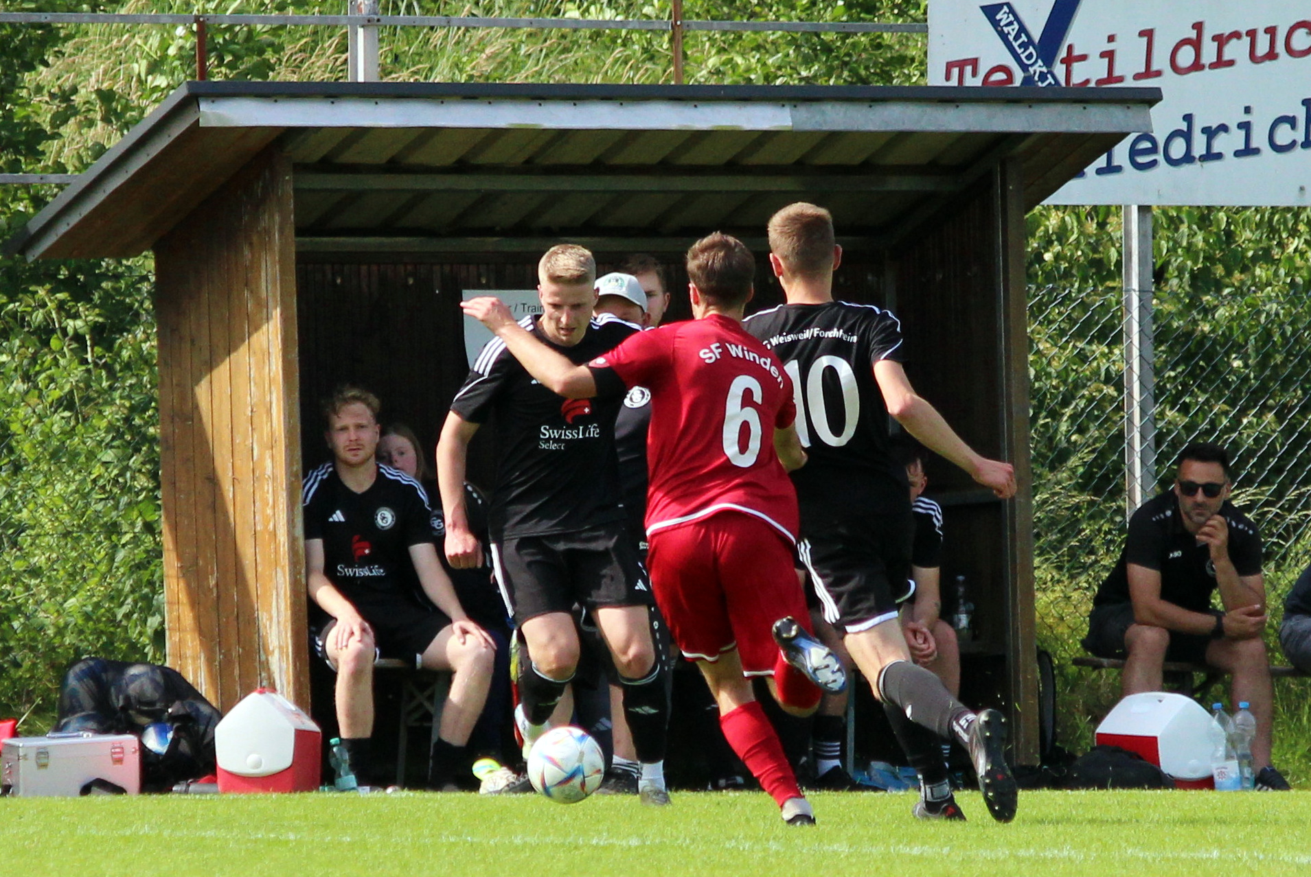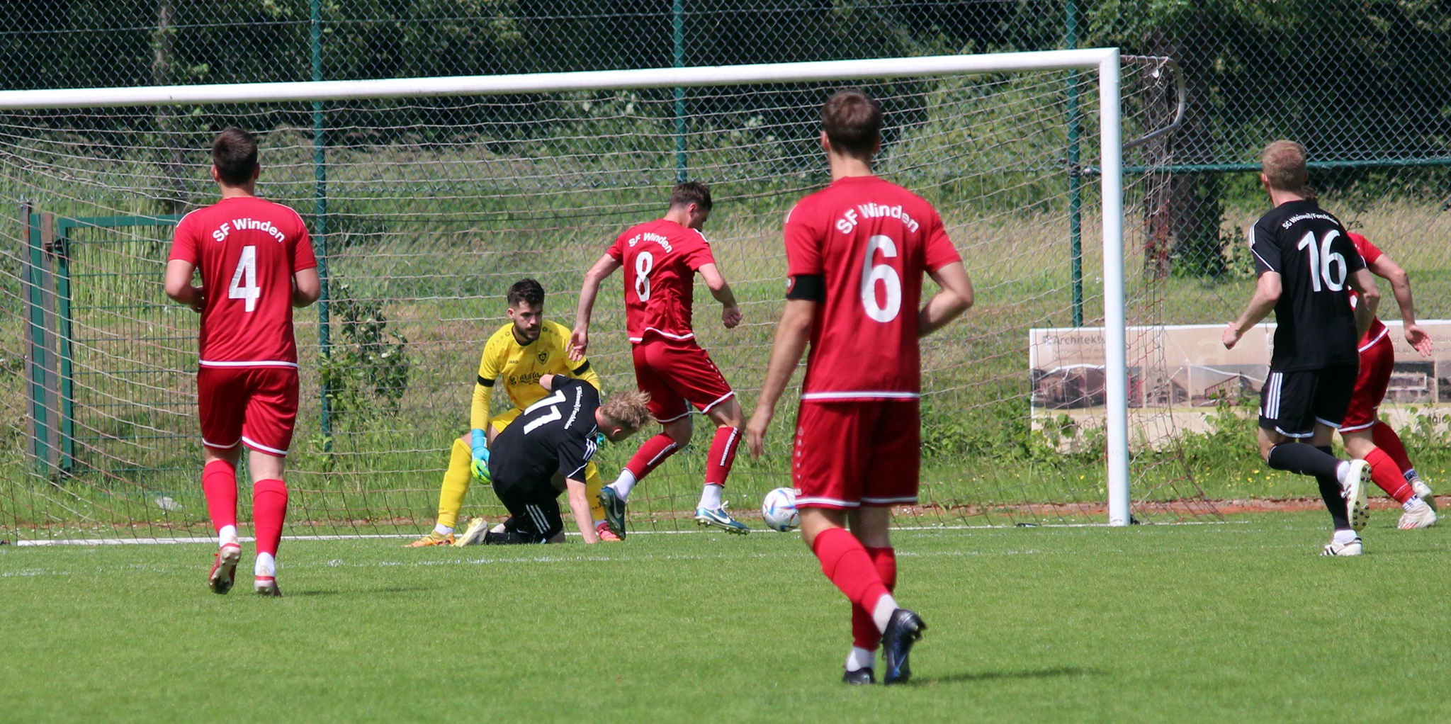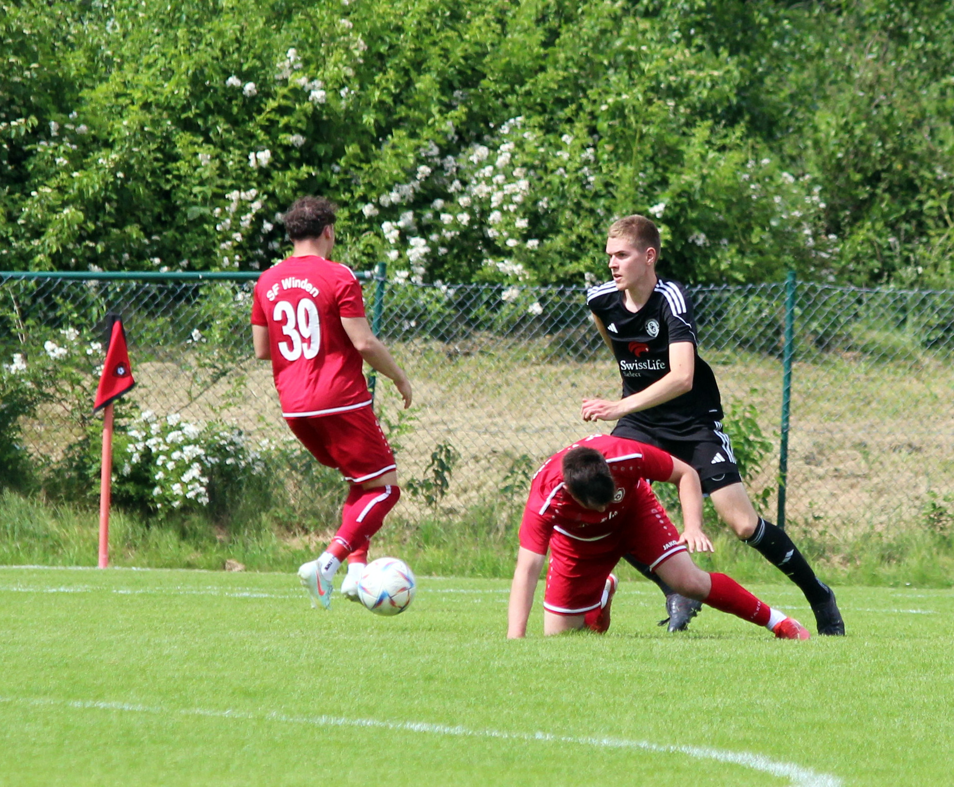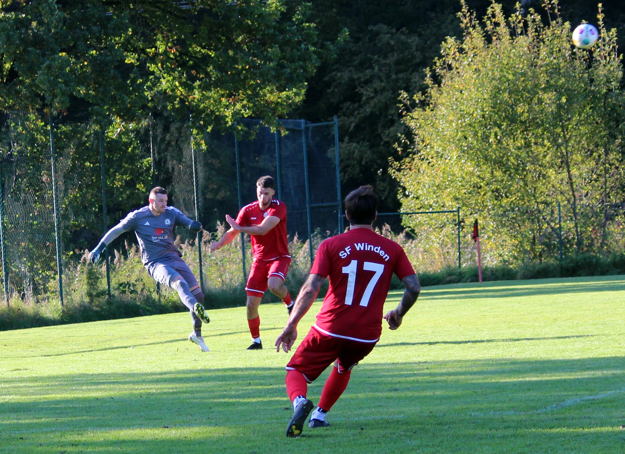 In der 1. Hälfte verlief das Spiel in Winden ziemlich ausgeglichen und die Tore zum 1:1 Pausen-stand fielen ohne große Vorankündigung. Till Stöcklin traf zum 1:1 (32) Die SG musste früh zweimal wechseln, während der Gastgeber mit 3 Wechseln nach der Pause die beste Phase einläutete. Als diese Drangphase überstanden war gelang dem Gastgeber im Anschluss an einen Freistoß der erneute Führungstreffer. (83) zum 2:1 In den verbleibenden Minuten lag der Ausgleich mehrfach in der Luft,der Ball wollte aber nicht mehr in das gegnerische Tor.