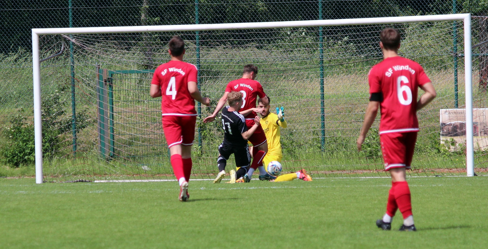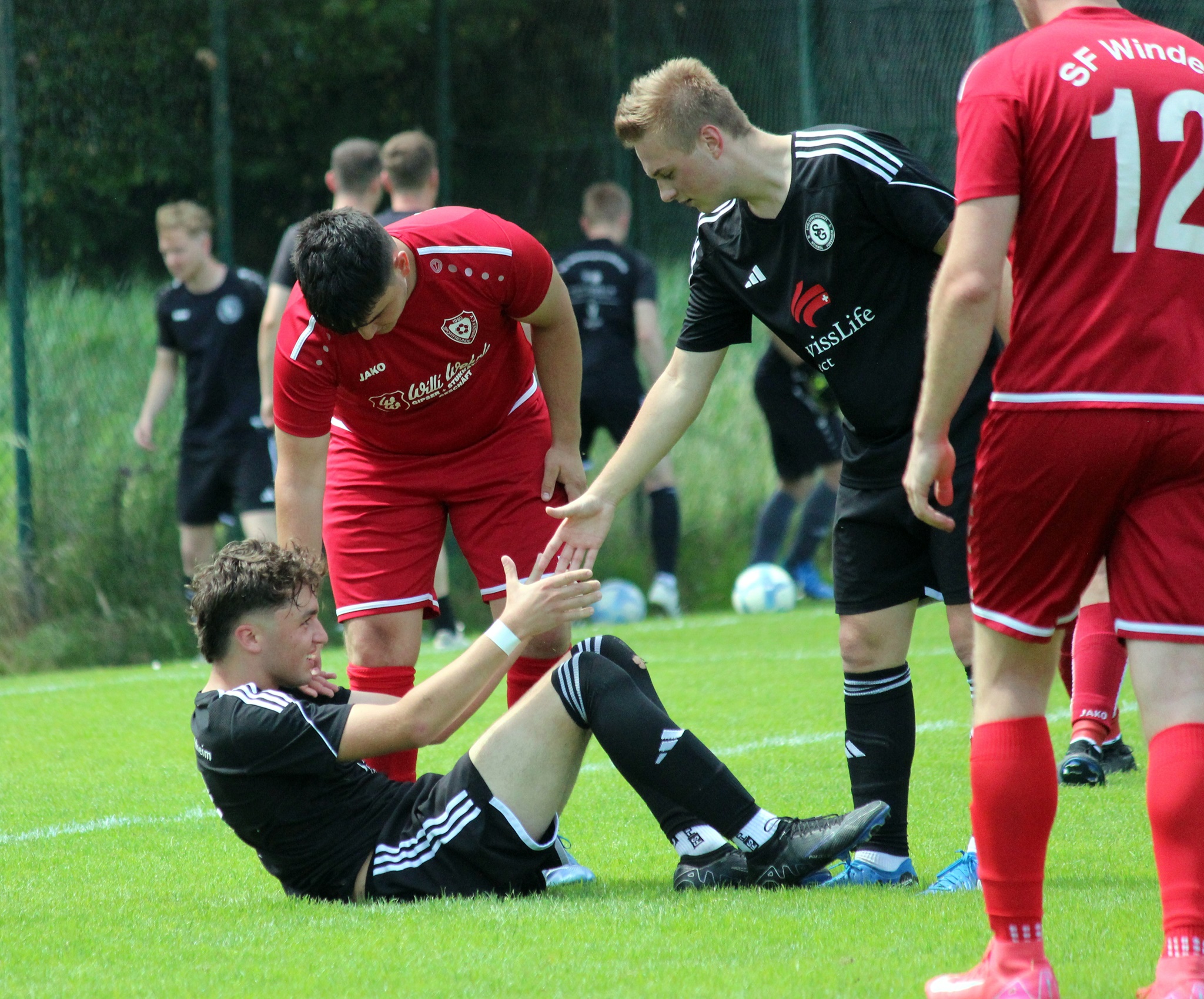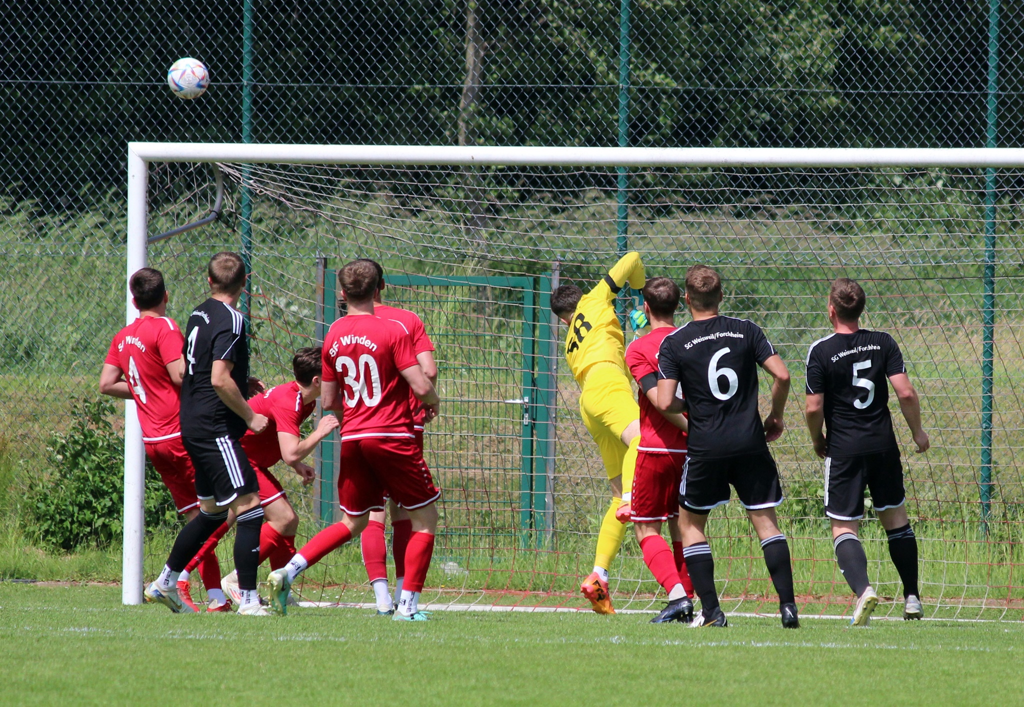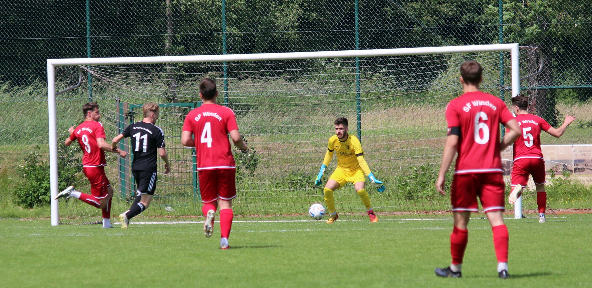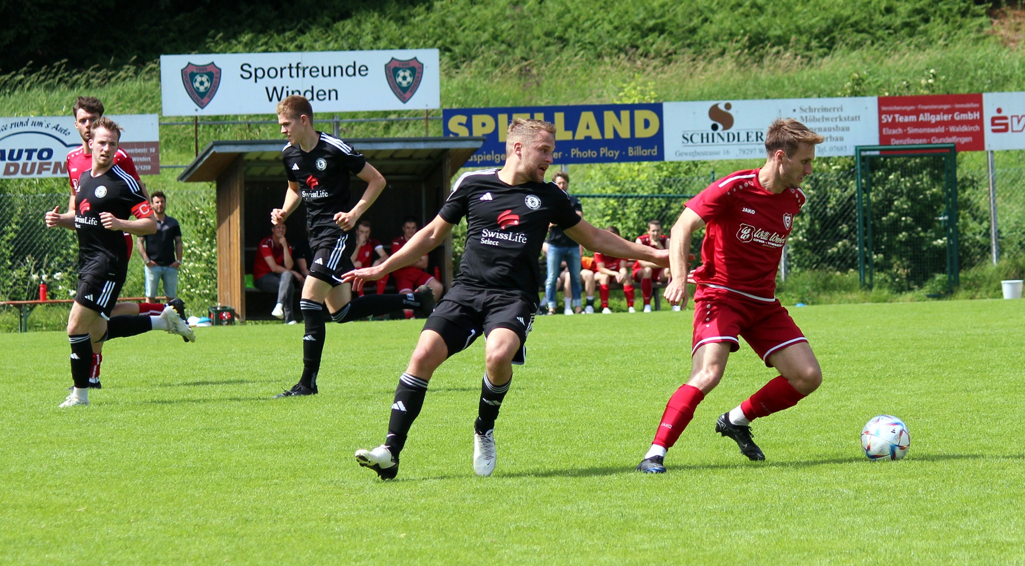 In der 1. Hälfte verlief das Spiel in Winden ziemlich ausgeglichen und die Tore zum 1:1 Pausen-stand fielen ohne große Vorankündigung. Till Stöcklin traf zum 1:1 (32) Die SG musste früh zweimal wechseln, während der Gastgeber mit 3 Wechseln nach der Pause die beste Phase einläutete. Als diese Drangphase überstanden war gelang dem Gastgeber im Anschluss an einen Freistoß der erneute Führungstreffer. (83) zum 2:1 In den verbleibenden Minuten lag der Ausgleich mehrfach in der Luft,der Ball wollte aber nicht mehr in das gegnerische Tor.