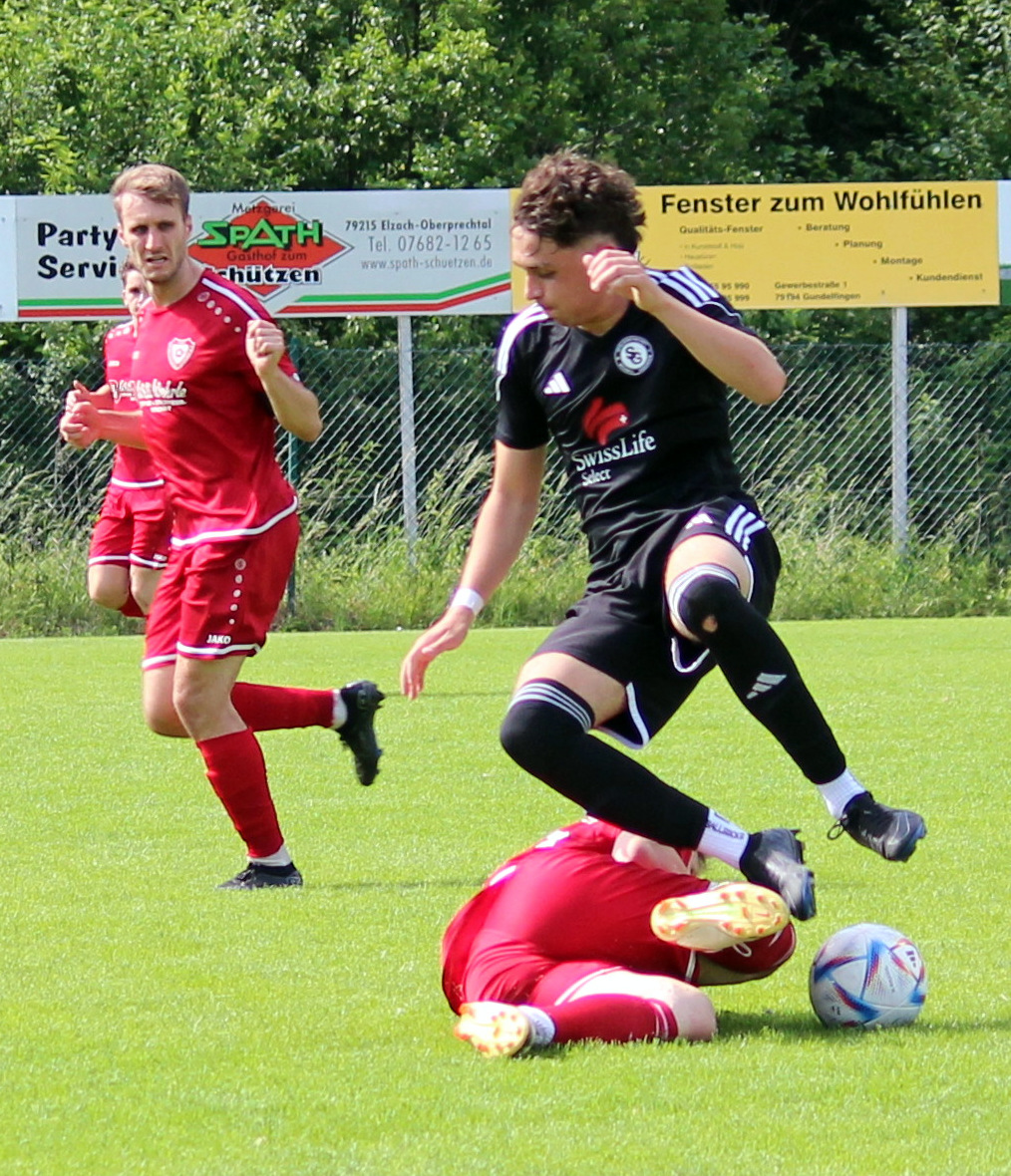 Jeweils nach ausgelassener Riesenchance geriet die Heimelf gegen die zweikampfstärkeren Elztäler in Rückstand.( 30,62) Zweimal gelang es kurz vor Ende des Spielabschnitts diese auszugleichen.( Till Stöcklin, Manuel Ritter) Mehr war an diesem Tag nicht drin.