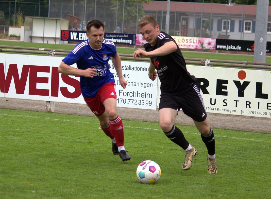 Die SG Weisweil / Forchheim hat am 25. Spieltag den FC Teningen II mit 2:1 geschlagen und wichtige Punkte im Abstiegskampt eingefahren. Gegen eine gute aufgelegte Verbandsliga-Reserve geriet man bereits nach 5 Minuten in Rückstand. Die SG tat sich schwer in dieser Phase und hatte kaum eigenen Ballbesitz. Nach 20 bis 30 Minuten wurden die ersten Chancen herausgespielt ohne jedoch dem Ausgleich nahe zu sein. Anderes Bild nach Seitenwechsel. Mit dem Willen das Spiel zu drehen kamen die Mannschaft aufs Feld zurück. In der 70. Minute wurde Till Stöcklin im Strafraum elfmeterreif zu Fall gebracht. Den fälligen Strafstoß verwandelte der gefoulte selbst. Es war nun ein offener Schlagabtausch. SG –Torhüter Aaron Striegel hielt mit mehreren Glanzparaden seine Mannschaft im Spiel. In der 80. Minute war Florian Tolksdorf nach sehenswerter Flanke von Nils Kress zur Stelle und köpfte die Kugel unhaltbar ins Teninger Gehäuse. In der restlichen Spielzeit passiert nichts mehr und man konnte die 3 Punkte in Forchheim behalten.
