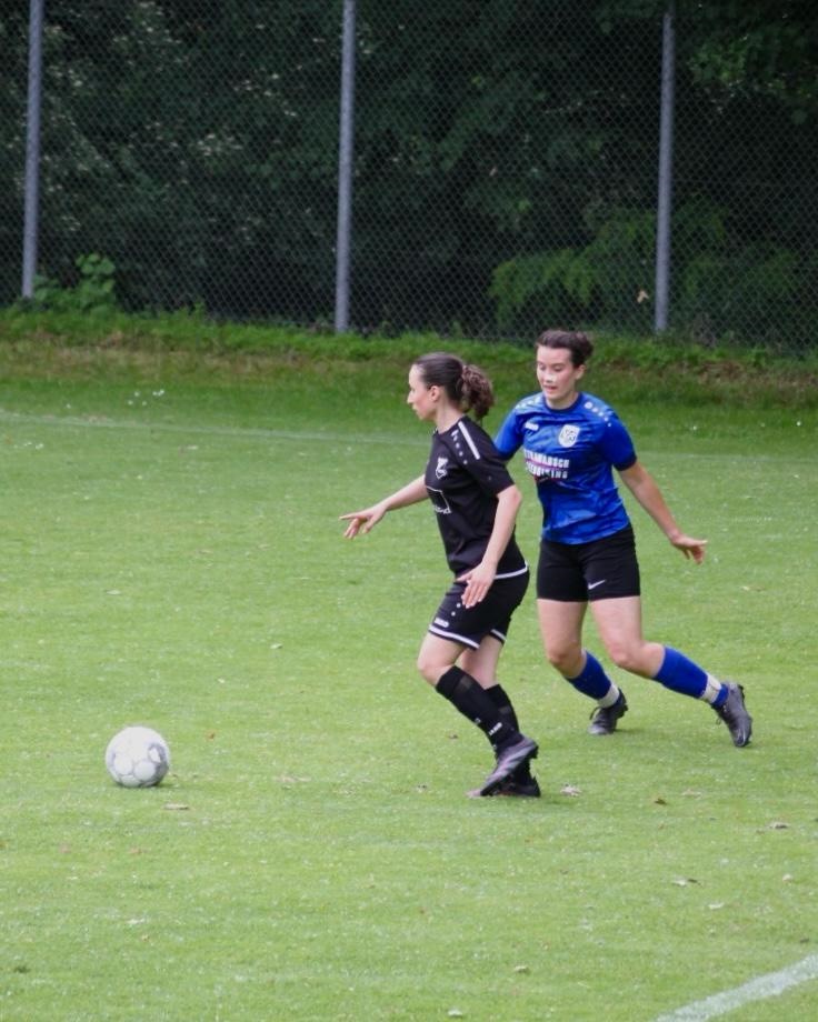 In die zweite Hälfte starteten beide Mannschaften hochmotiviert. Die Gastgeberinnen drängten auf den Ausgleich, doch die SG verteidigte entschlossen. In der 69. Minute war es Eva Engel, die aus der eigenen Hälfte durchstartete und nach einem schönen Doppelpass mit Angi Braun den Ball mit der Spitze ins lange Eck schob. Die Euphorie war groß. Das Spiel wurde nun immer intensiver und kampfbetonter. Ein drittes Tor lag spürbar in der Luft, doch am Ende begnügte sich das Team nach aufregenden 90 Minuten mit einem verdienten 2:0-Sieg und drei wichtigen Punkten!