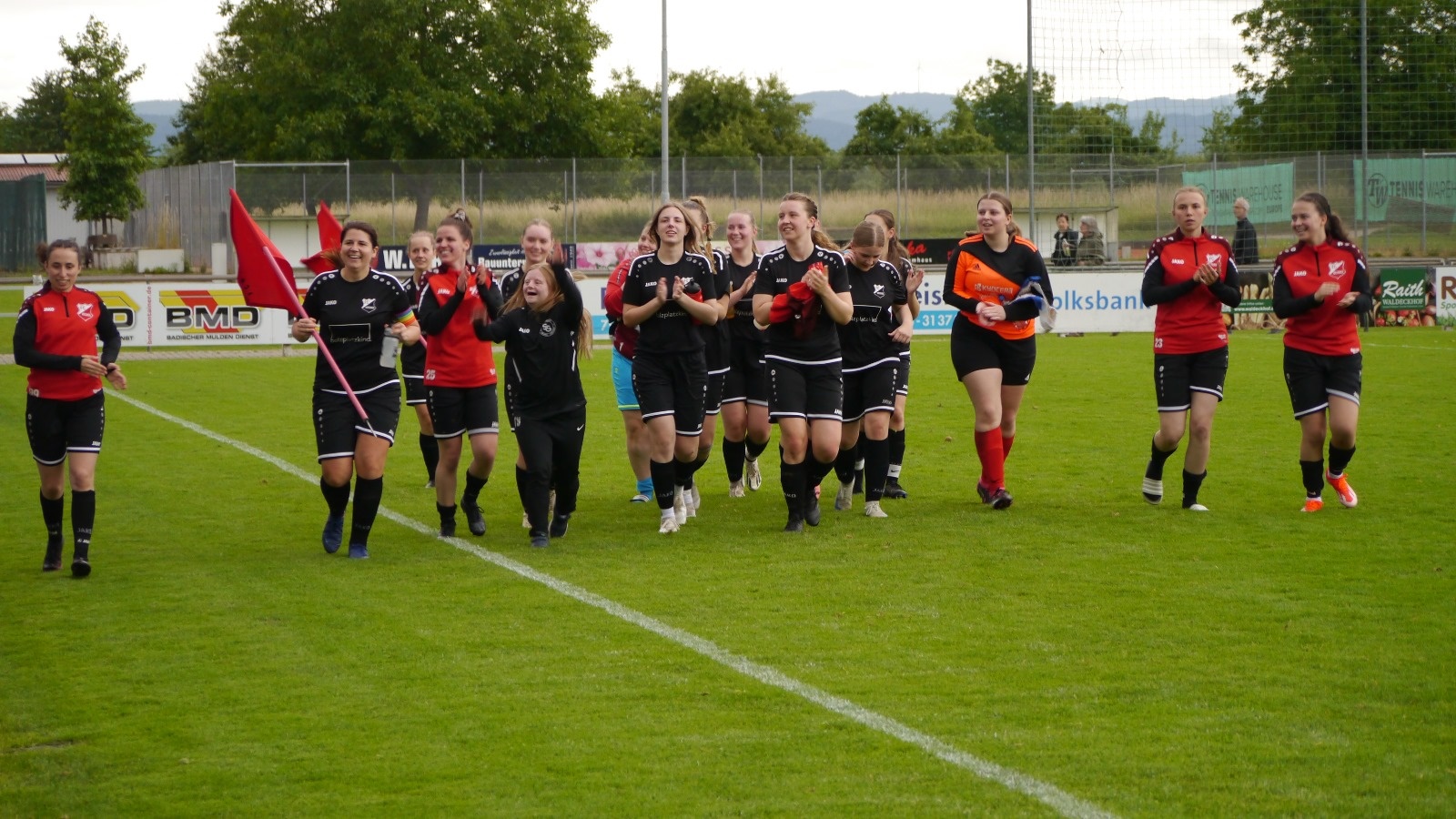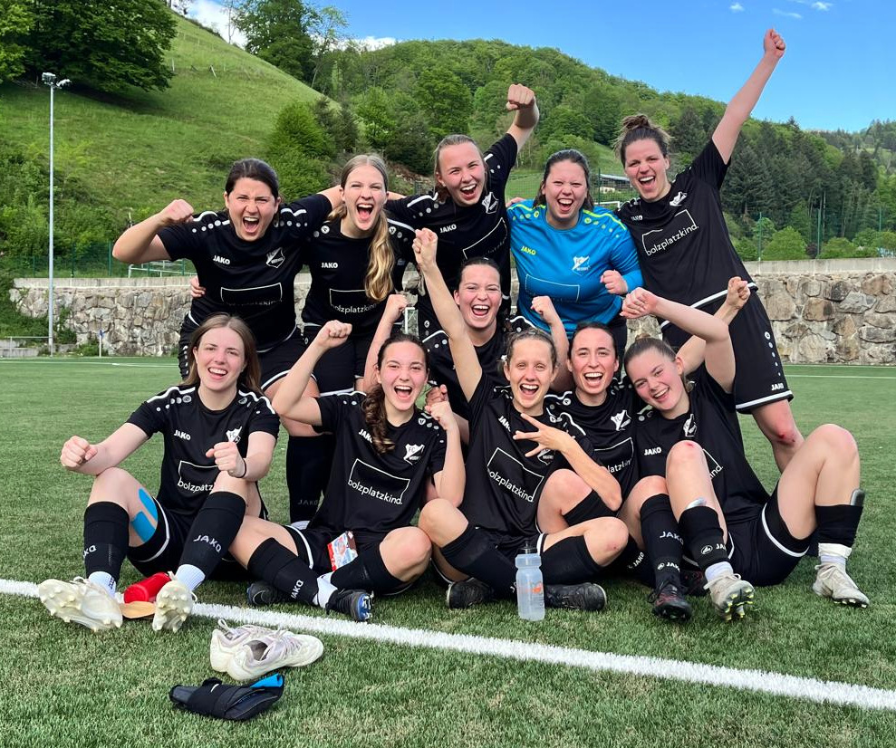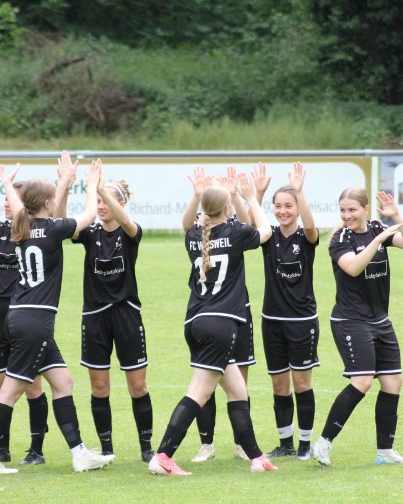 Nach der Halbzeitpause kippte das Spiel: Bereits drei Minuten nach Wiederanpfiff gelang der SG Obermünstertal/Staufen der Ausgleichstreffer. Zehn Minuten später drehten die Gastgeberinnen die Partie und gingen mit 2:1 in Führung. Ein kurzer Schock, der Wirkung zeigte: Nach Abpraller eines Torschusses von Nele Klosa war es Anna Gendron, die den Ball entschlossen ins Netz jagte und zum 2:2 ausglich. Beide Teams suchten in der Schlussphase die Entscheidung – und am Ende war es der FCW, der jubeln durfte: Angelina Braun brachte den Ball von der linken Seite in den Strafraum, der Ball kullerte an mehreren Gegnerinnen und letztlich auch an der Torhüterin vorbei ins Netz. Nun wollten die Weisweilerinnen den Sieg nicht mehr aus der Hand geben. Als der erlösende Pfiff ertönte, war die Freude auf und neben dem Platz riesig.
