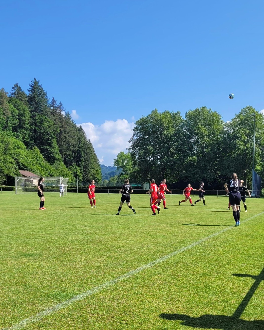 Auf dem kleinen Kunstrasen im Münstertal betrat die SG ungewohntes Terrain – doch von Beginn an zeigten die Spielerinnen ihre Stärken im Stellungsspiel und in der Zuordnung. Offensiv entwickelten sich zahlreiche Möglichkeiten, lange Bälle wurden gut aufgenommen und weiterverarbeitet. Die gegnerische Torhüterin wurde früh gefordert. Nach 25 Minuten belohnte schließlich Angi Braun das Team für seinen Aufwand und hämmerte den Abpraller eines Schusses von Mariella Weis ins Tor. Weitere Chancen folgten, doch der Ball wollte einfach nicht erneut ins Netz. Bis zur Halbzeit wurde das Spiel ausgeglichener. Auf dem engen Platz zeigte sich der Spielaufbau stellenweise schwierig, dennoch suchte die SG immer wieder den Weg nach vorne.
