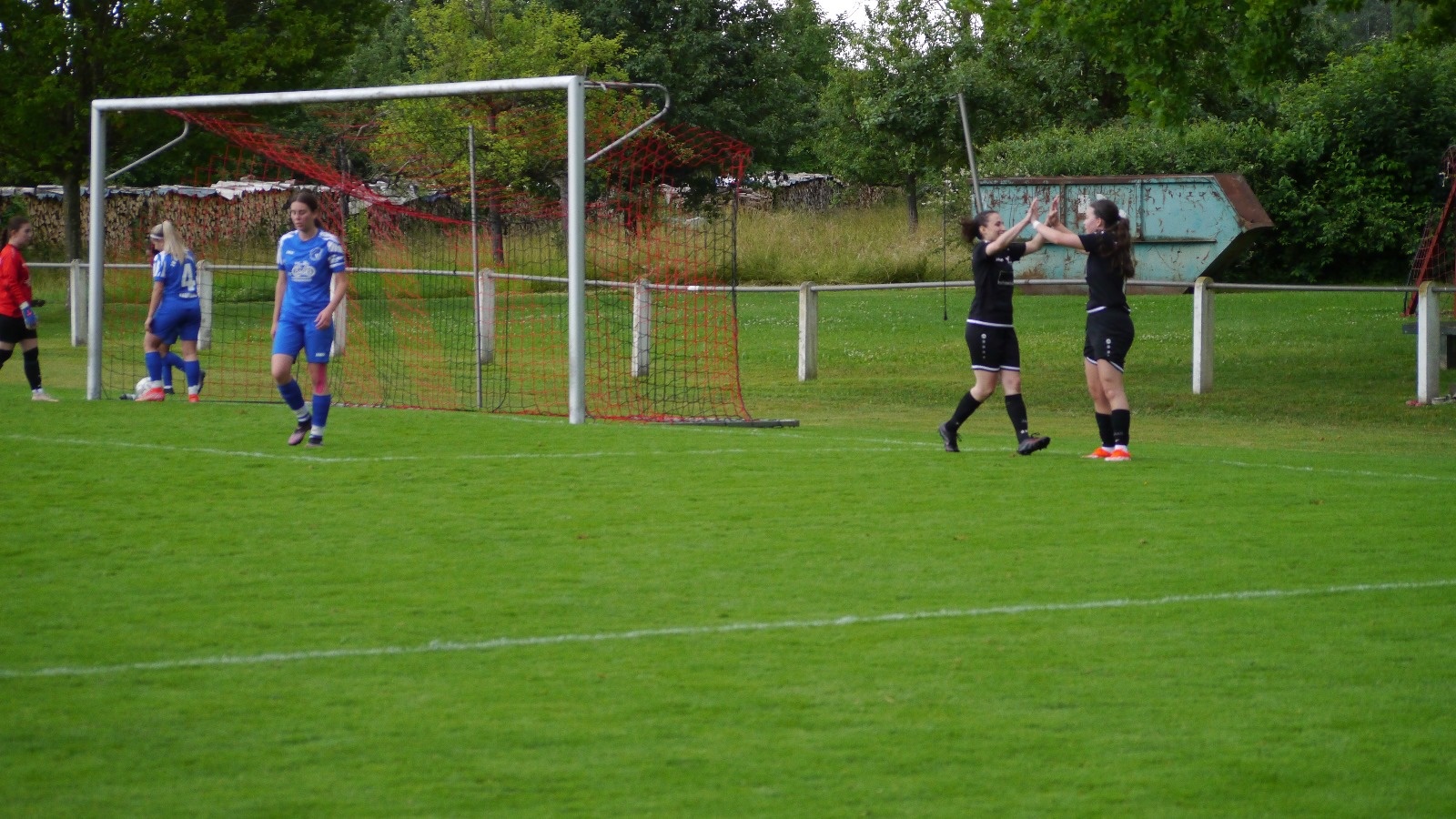 In der zweiten Hälfte fand die SG immer besser ins Spiel und dominierte zunehmend das Geschehen. Standardsituationen wurden wie aus dem Bilderbuch direkt vors Tor gebracht, doch das letzte Fünkchen Glück fehlte. Mehrmals landete der Ball nach Freistößen und Ecken von Zapf und Klosa am Aluminium. Die Hitze machte den Spielerinnen zu schaffen, doch der Wille nach einem weiteren Tor war größer. Als Eva Engel den Ball an der Seitenlinie entlangdribbelte und aus einer Flanke kurzerhand ein Tor wurde, war der Knoten gelöst. Mit diesem Vorsprung brachte die SG das Spiel souverän über die Bühne und jubelte am Ende verdient über drei wichtige Punkte und ein starkes Spiel!