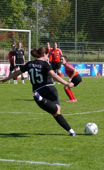 Die Gastgeberinnen starteten gut in die Partie und machten deutlich, dass sie den Gästen keine Chancen geben möchten. Die Offensive um Mariella Weis und Angi Braun spielten mehrmals gefährliche Bälle in die gegnerische Hälfte. Die Sicherheit der eigenen Abwehr bot den Freiburgerinnen kaum Möglichkeiten. Nach Pass von Weis auf Braun, die im Strafraum noch einmal den Ball quer passte, versenkte Nele Klosa das Leder im Netz und belohnte das Team mit dem Führungstreffer. Doch die Freude währte nicht lange: Kurz vor dem Halbzeitpfiff gelang den Gästen mit einem platzierten Fernschuss der Ausgleich.