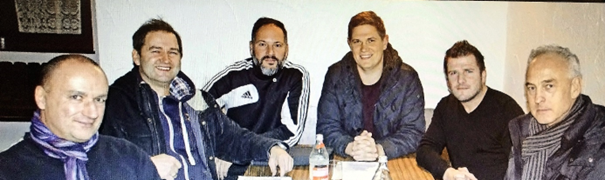 Vertreter der sportlichen und administrativen Leitung des FC Weisweil erläutern die Aufgaben und Ziele des Vereins. Von links Frieder Heidt,