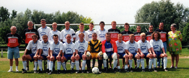 Stehend v.li.: Betreuer K. Haag, Trainer G. Baumer, M. Grässlin, R. Schäfer, F. Volk, M. Maurer, M. Rodenberg, S. Krumm, L. Stöcklin, A. Leber, A. Oehler, M. Oehler, 2.Vors. U. Kern, 1. Vors. B. Gerich