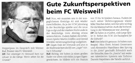 Am 19. Oktober 2004 waren wir bei Doppelpass wieder in den Schlagzeilen. „Ottmar Sommer tritt zurück – Baumer erneut Interimstrainer beim FC Weisweil.“