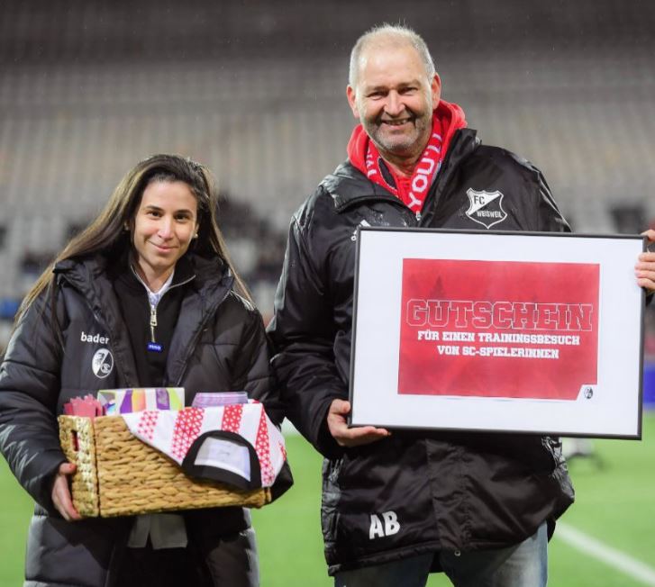 (6.2.26) Wir haben einen Besuch Besuch der SC Spielerinnen gewonnen weil wir gestern beim Spiel der Frauen der Verein mit den meisten Gruppentickets waren.