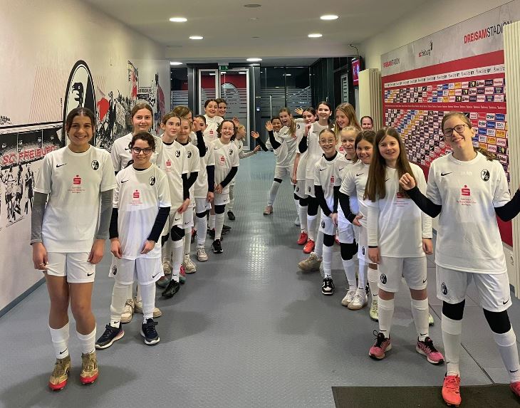 Aber nicht nur unsere D-Juniorinnen waren im Stadion. Mitgereist sind über 100 FCW Jugendspielerinnen, Familien und Freunde unserer Einlaufmädels. Diese Wucht an Präsenz hat dann direkt zum nächsten Highlight geführt: Durch die größte Gruppen-Ticketbestellung haben wir einen persönlichen Besuch der SC-Spielerinnen bei uns in Weisweil gewonnen! Die Freude darüber war und ist riesig!